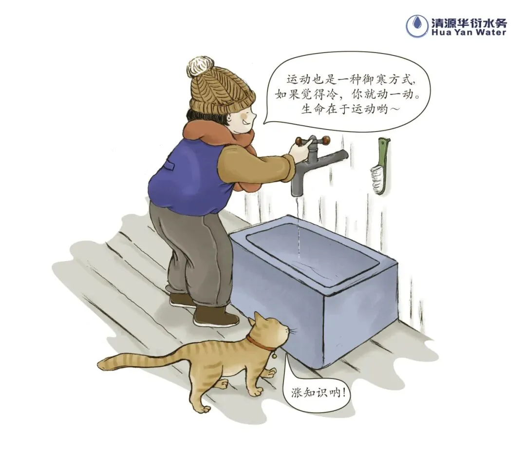 在严寒天气,特别是气温达-5℃以下时,可在晚间稍稍拧开龙头,使水流成线,保证管内自来水流动来防止夜间冻结。