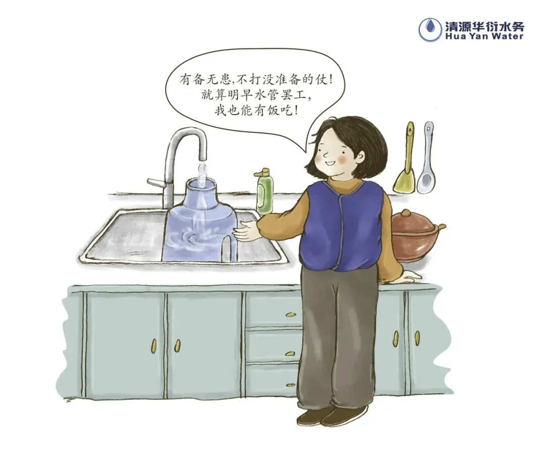 晚上做好贮水准备,以避免给次日生活造成不便;长期外出回来,第一次用水时,建议放水数分钟至水质澄清。