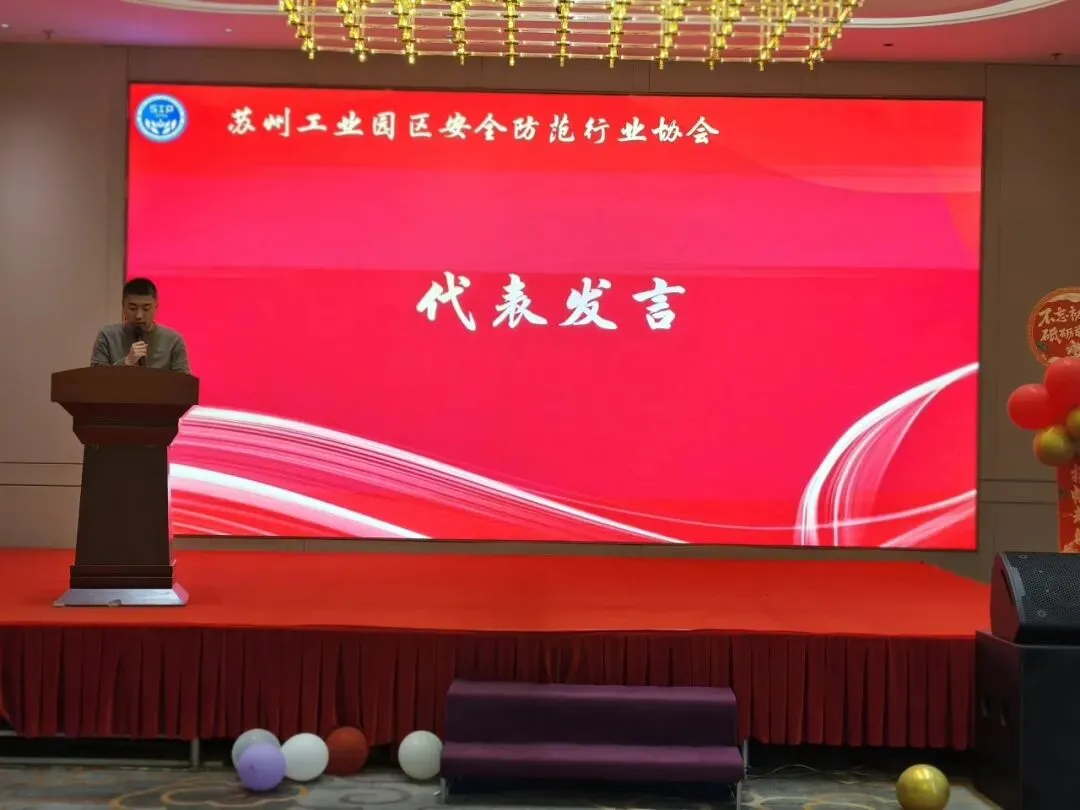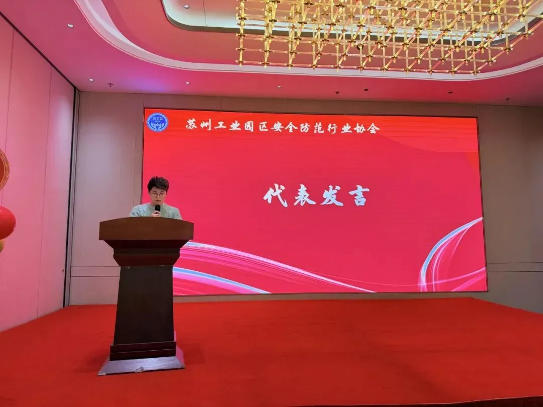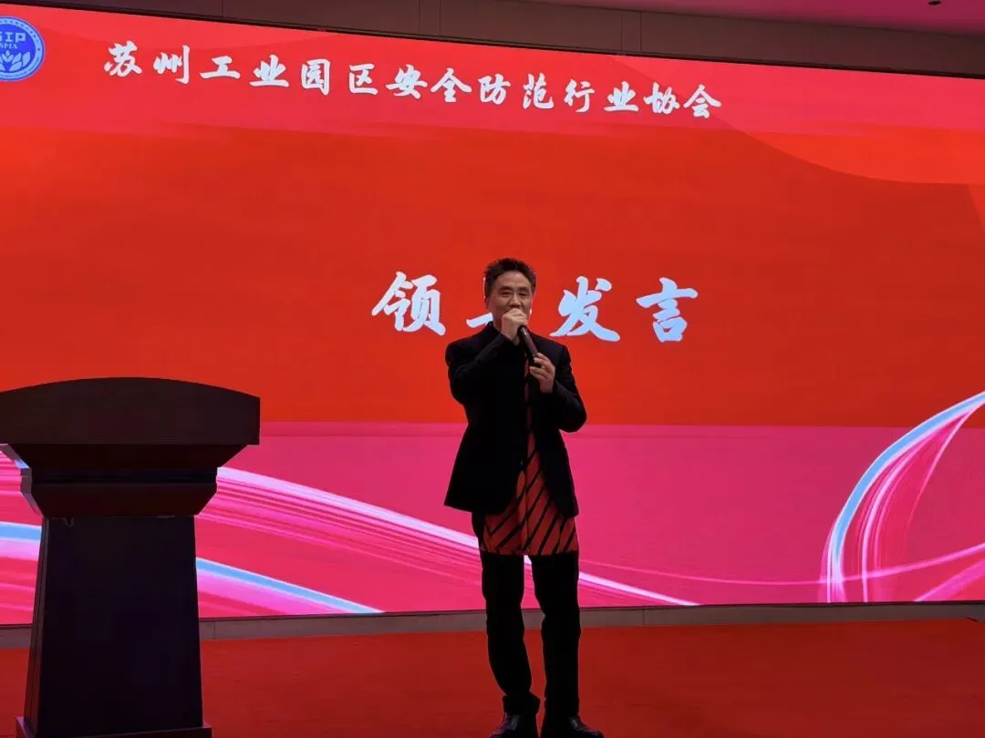 苏州市安防协会秘书长朱雨真在会上发表致辞。他表示,作为见证并参与苏州工业园区安全防范行业协会创立与发展的一员,深感行业发展的责任与使命。未来,市安防协会将与园区安防协会深化战略合作,推动资源共享、优势互补,携手为苏州安防产业高质量发展搭建更广阔的平台。
