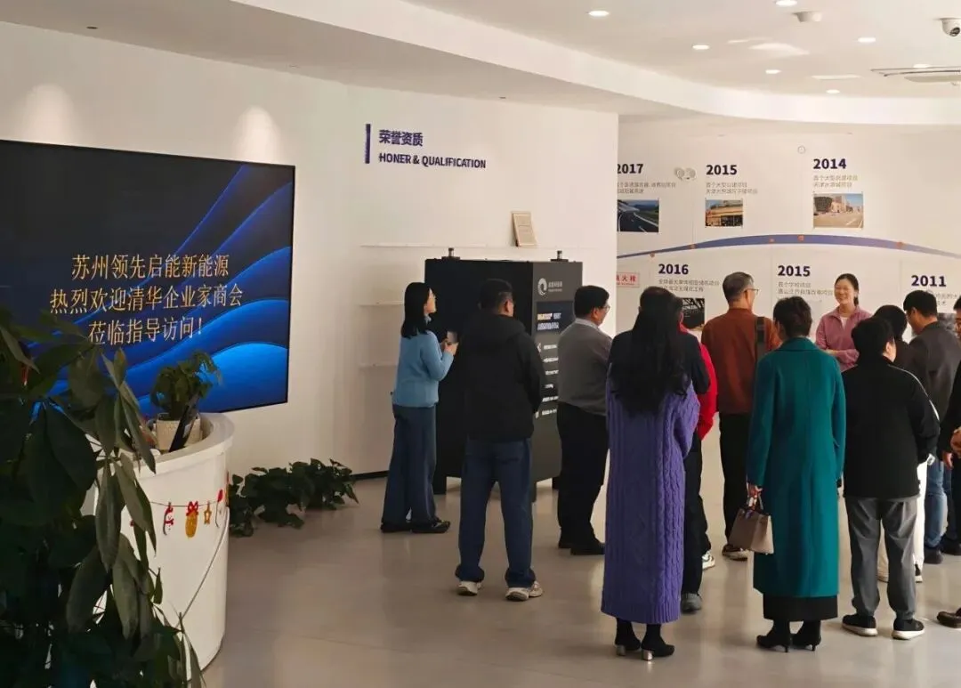 2026年1月16日,为深入了解会员企业发展动态,促进绿色能源技术领域的交流与合作,苏州市清华企业家商会副会长兼秘书长曹宏伟、副会长朱国栋等一行赴苏州领先启能新能源有限公司(以下简称“苏州领先启能”)进行实地考察与深度对接。苏州领先启能董事章灵军博士与公司相关负责人予以热情接待,共话合作机遇。