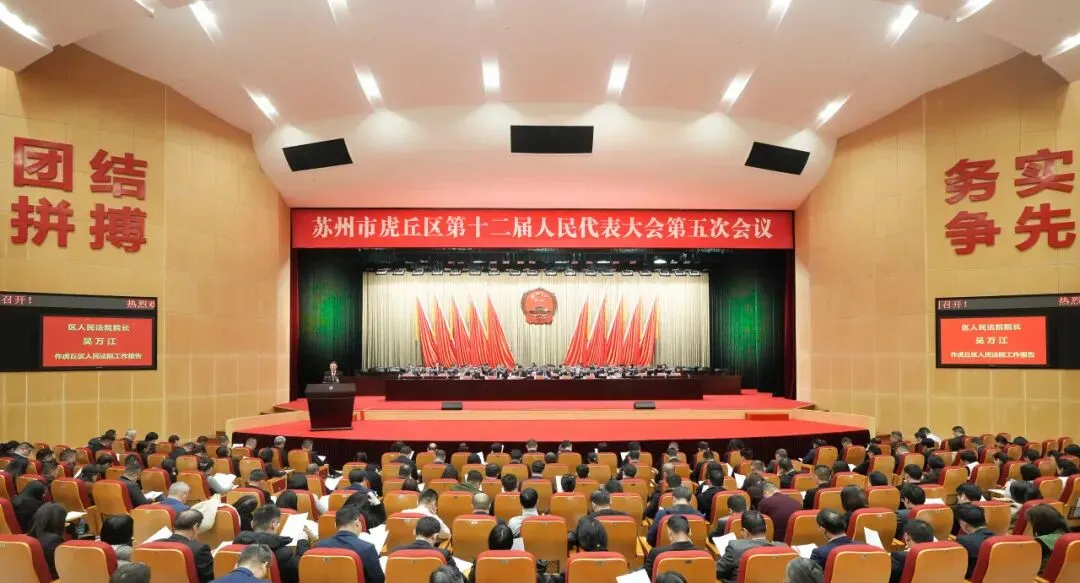 2026年1月19日下午,在苏州市虎丘区第十二届人民代表大会第五次会议上,虎丘区人民法院院长吴万江向大会报告工作。