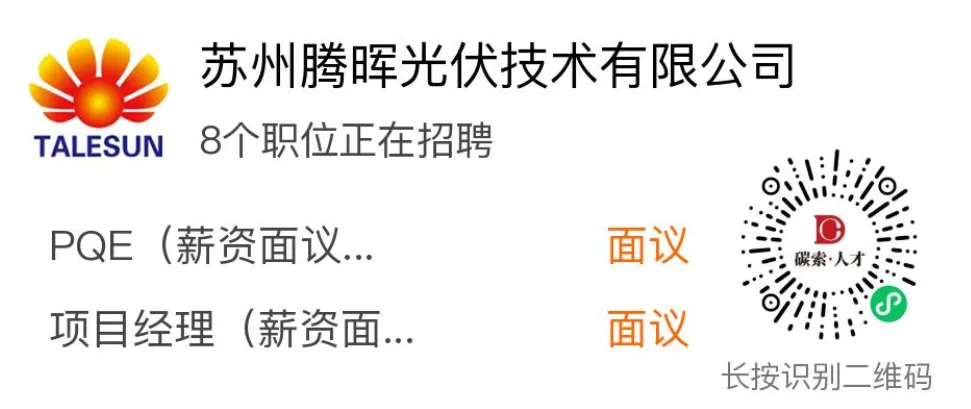 >苏州腾晖光伏技术有限公司招聘PQE工程师、项目经理,欢迎投递