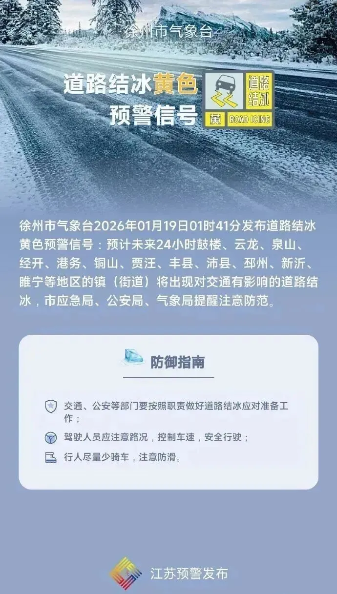 今日发布道路结冰黄色预警信号