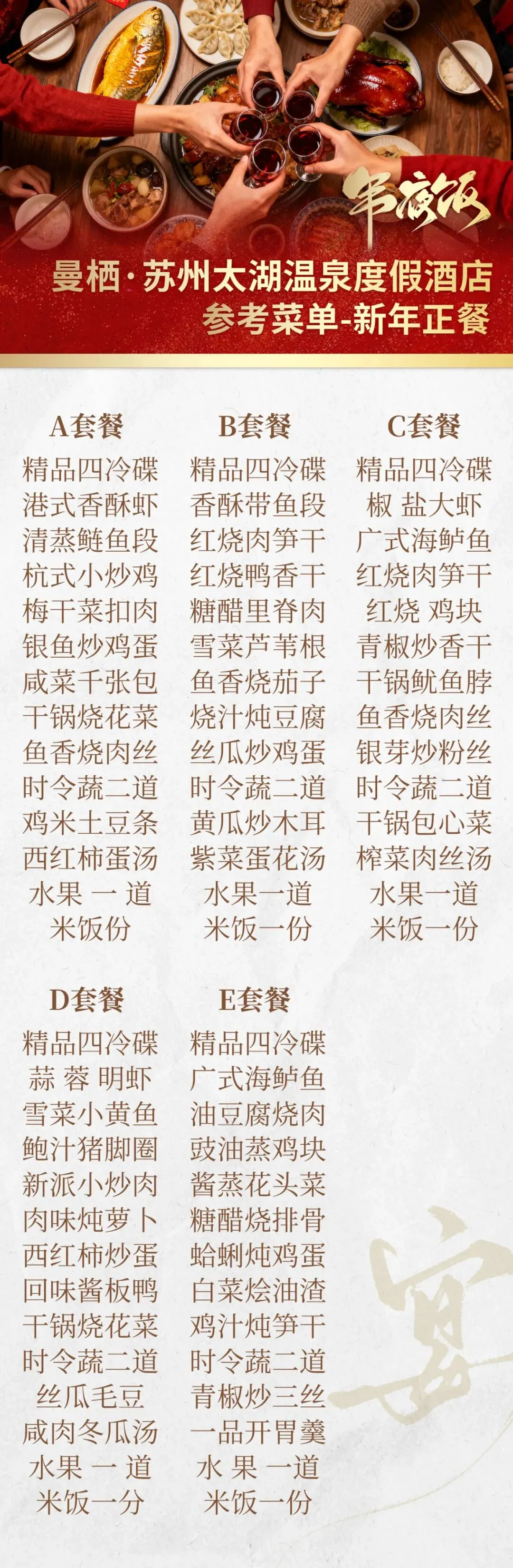8;10人一桌10菜1汤。因考虑到食品安全问题,一律不代加工食物。
