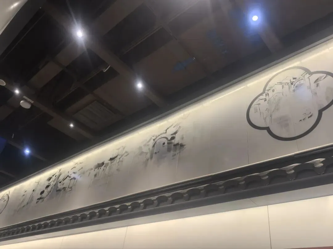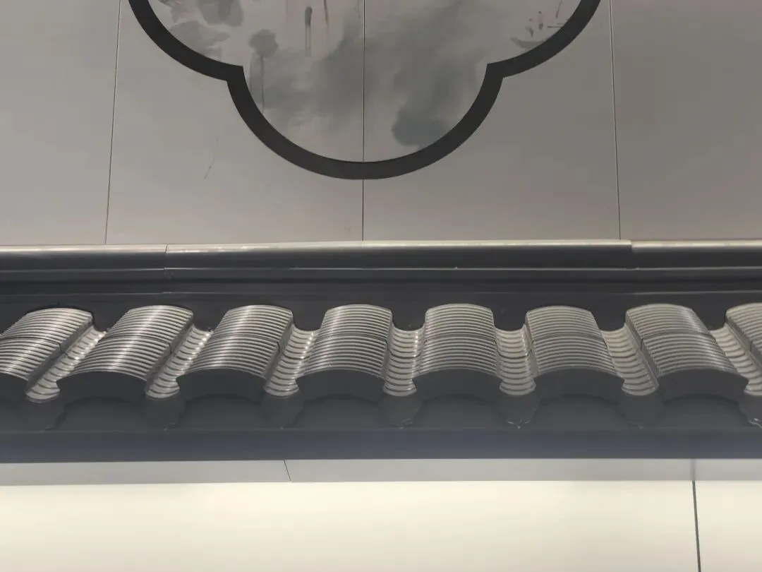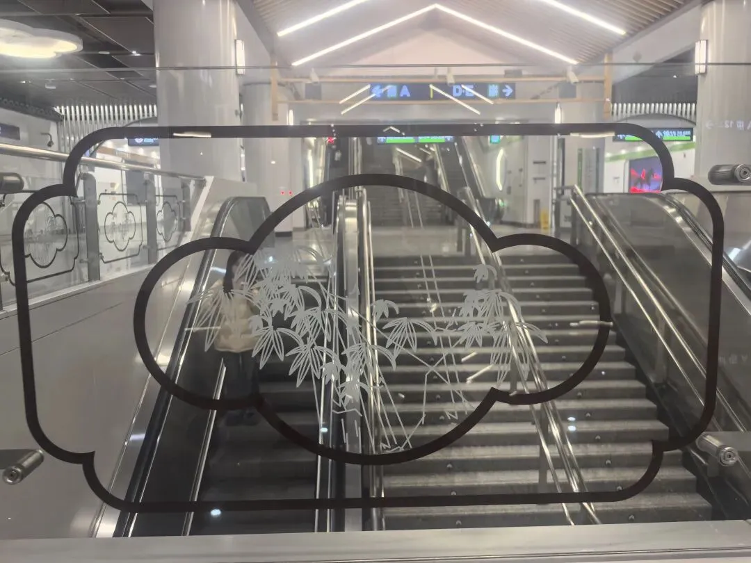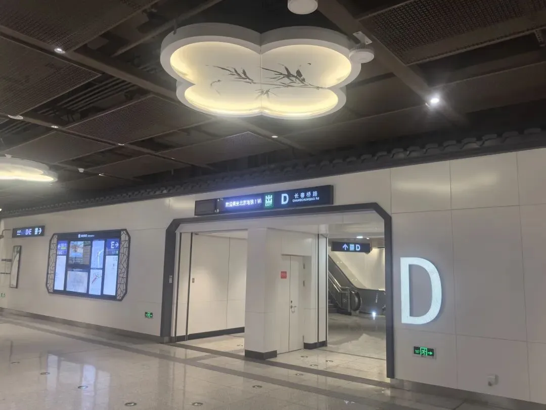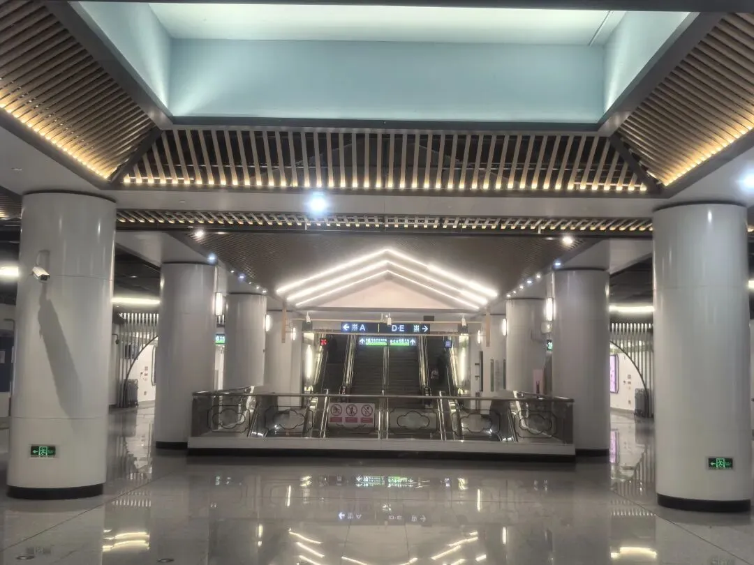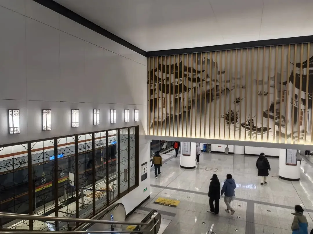 站内采用的水墨画装饰与特殊吸音材料墙面相结合,在展现江南水乡淡雅意境的同时,也起到了降低站内噪音的实用功能。而“灰瓦”装饰的站台门设计,既体现了江南建筑特色,又具备足够的耐用性和易清洁特性。