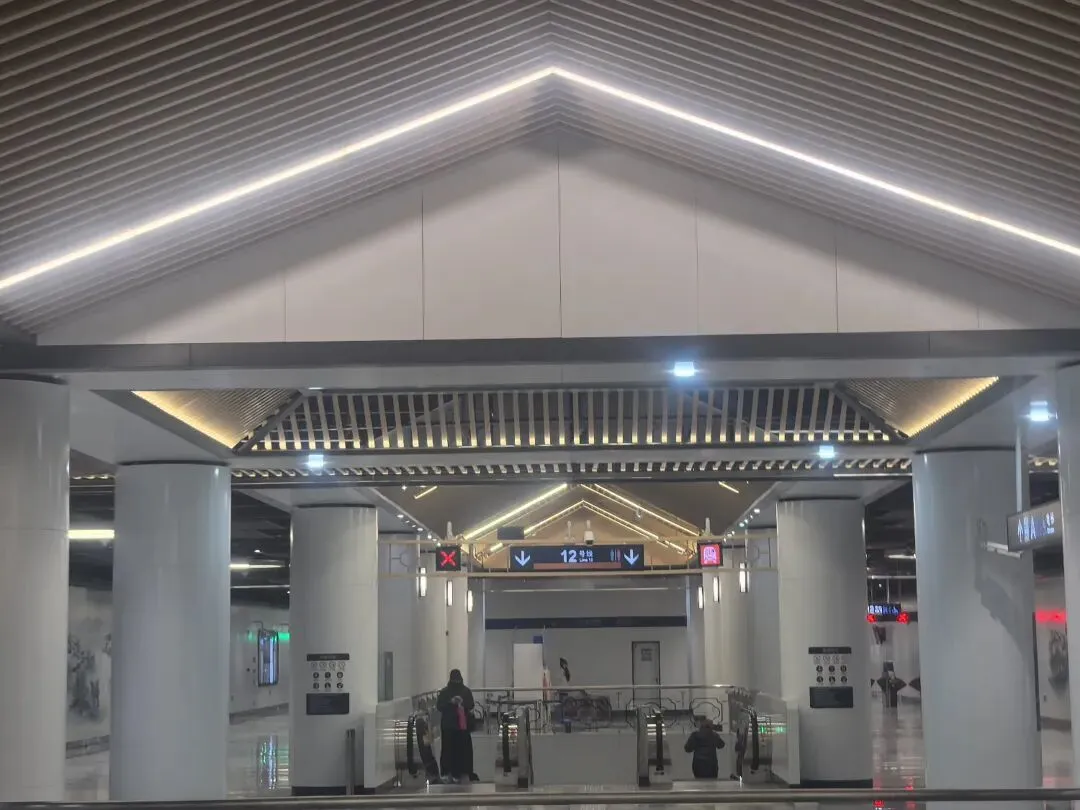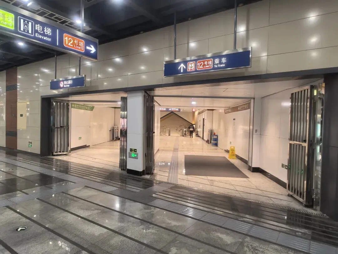 12号线站厅的大层高不仅为烟热积聚提供了缓冲空间,也为应急照明和标识提供了更充分的展示高度,增强了地下空间的通透感。这种“高敞”布局能有效降低乘客在紧急情况下的压抑感和焦虑情绪,间接提升了疏散效率。