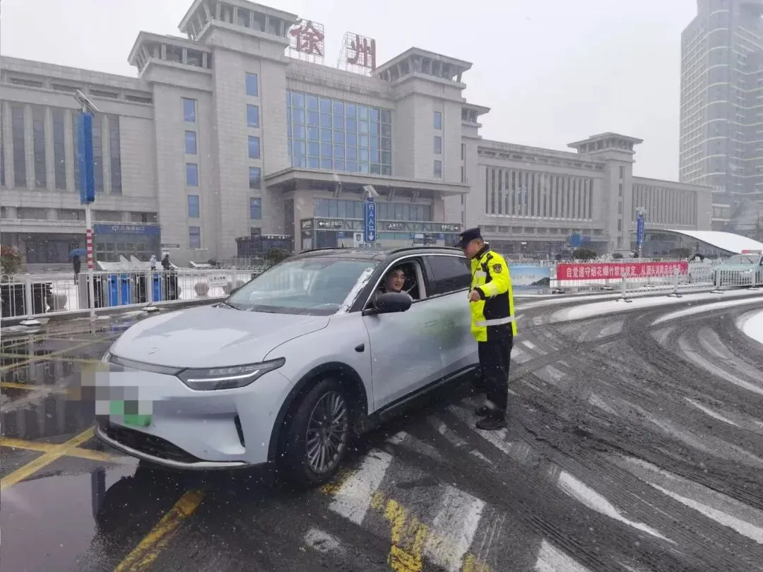 在客流密集的徐州汽车总站,云龙执法大队的执法人员坚守在风雪中的出站口。他们对每一辆出站客运车辆的安全技术状况进行细致检查。同时,执法人员不忘对每一位驾驶员进行面对面安全叮嘱,反复提醒“雪天路滑,务必减速慢行,保持安全车距”,将安全行车意识深植于驾驶员心中,从源头保障乘客出行安全。
