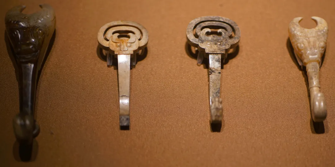 这组是南京博物院藏的汉代玉带钩,共四件,分别代表了汉代玉带钩的不同风格与工艺等级,是汉代贵族服饰体系的核心佩饰。