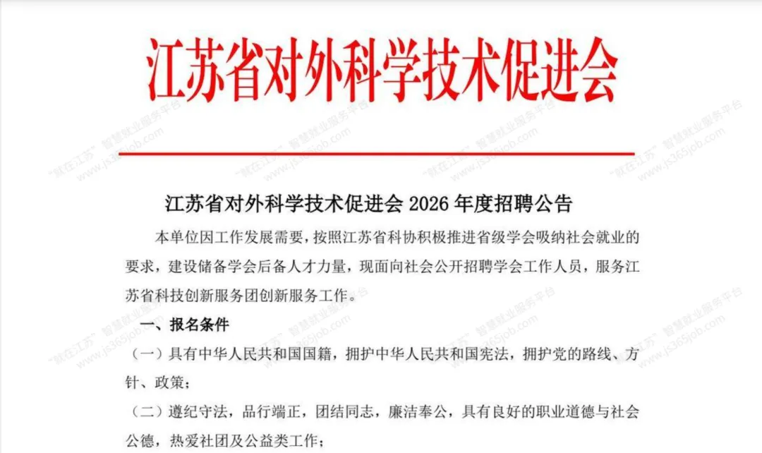 >南京招聘|江苏省对外科学技术促进会2026年度招聘