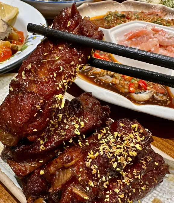 招牌菜:酱排骨先用葱姜料酒去腥,再放酱油糖慢炖。火别急,炖到筷子能轻戳进去,汤汁收浓却不糊锅。端上桌,酱香混着甜,粘唇不腻。