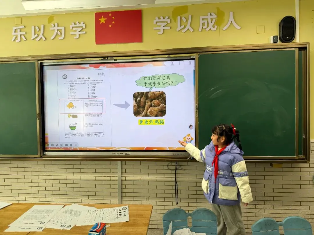 在科学老师的带领下详细讲解了人体所需的六大营养素以及合理摄入比例,通过“膳食宝塔”,孩子们一起了解健康的膳食结构是什么样的,大家通过搜集资料、小组讨论等方式交流了自己的理解,了解身体每日所需的各类营养成分(如蛋白质、脂肪、糖类、维生素等)及其作用,认识到合理膳食对身体健康的重要性。