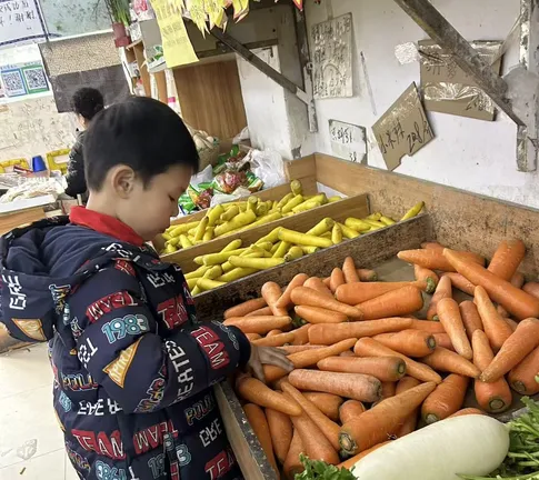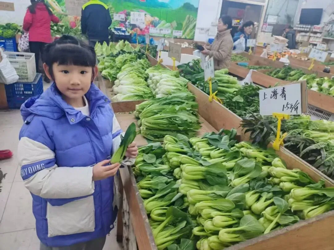 为了让设计出一份“合理搭配,营养均衡”的午餐菜单,学生在数学课上学习过“认识人民币”这一内容后,利用课余时间,走进超市、走进菜场,通过实践调查,实际了解多种菜品的市场价格,这不仅锻炼了学生的口语表达能力,也建立了本次跨学科学习中的食物与不同学科之间的连接。