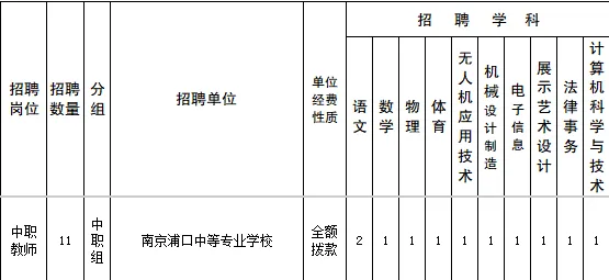 南京教师招聘,事业编制,南京浦口中等专业学校2026教师招聘