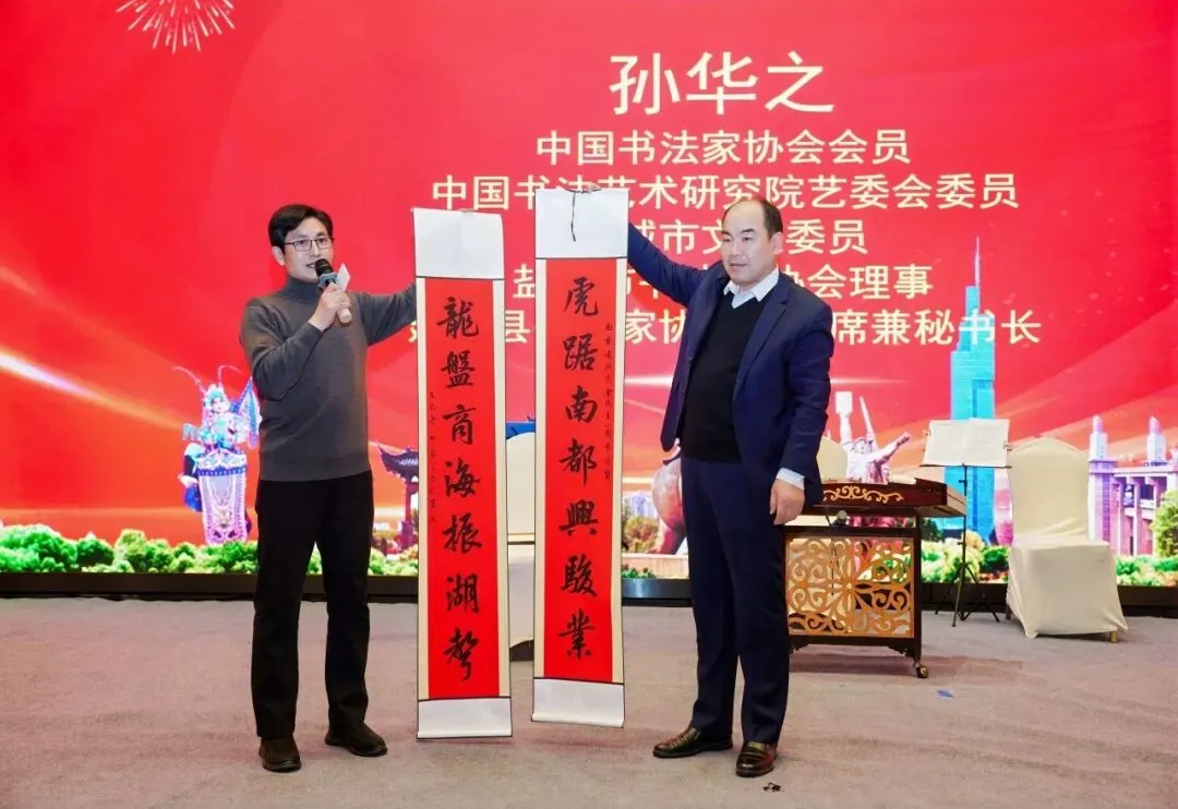 笔墨传情,新春送福。著名书法家孙华之、吕忠东亲临现场,挥毫泼墨创作春联、福字,笔走龙蛇间将真挚的新春祝福融入笔墨之中,为参会者送上满载文化底蕴的新年贺礼,让年会洋溢着浓浓的年味与暖意。