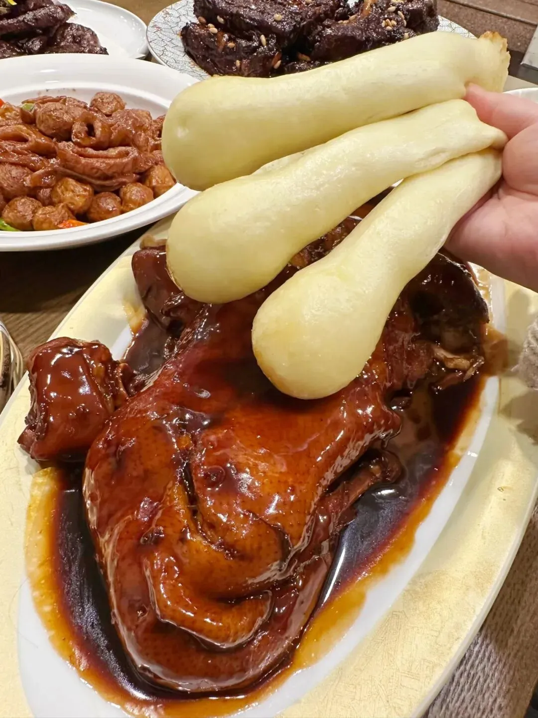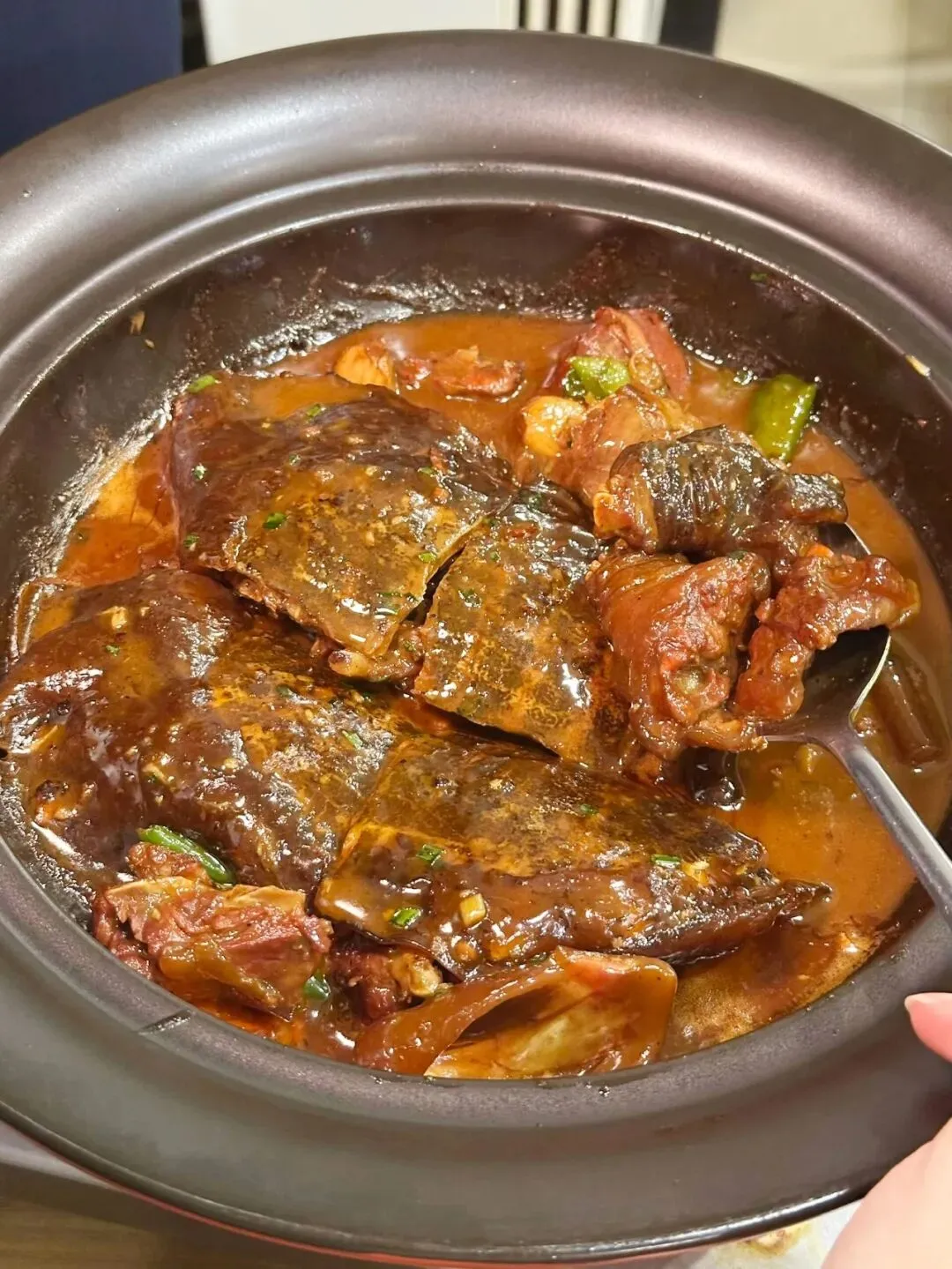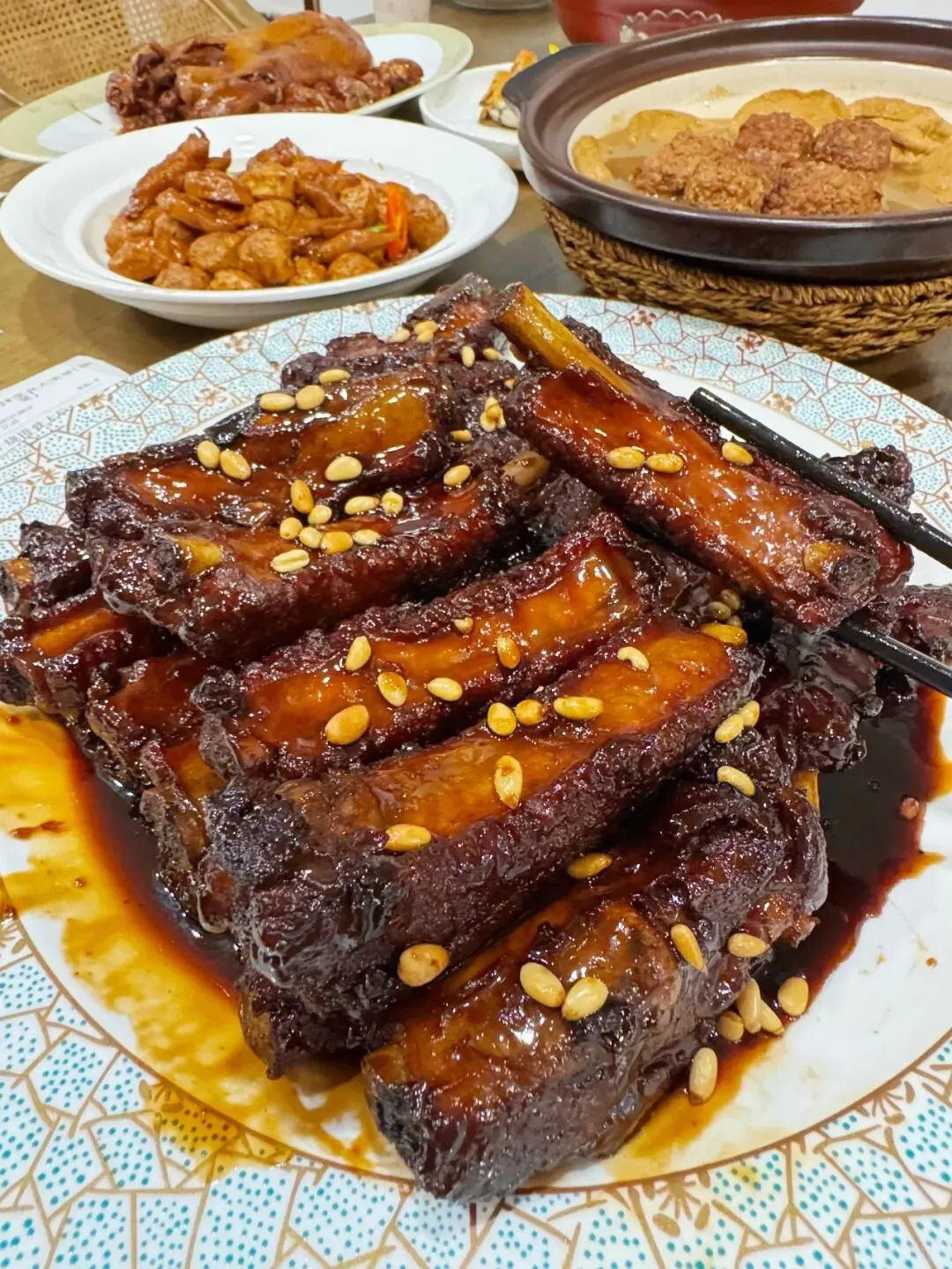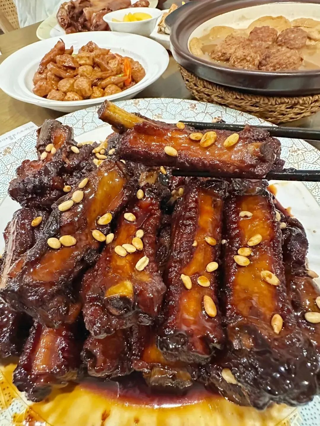 南京珠江路上有家土菜馆,都开了20多年啦,来的大多是本地老食客。他家的菜都是手工现做,绝非预制菜。我每次去必点松子红烧排骨,排骨大得像手掌,炖得色泽浓郁,甜咸适中,肉嫩还有脆骨,香脆可口,上面撒的松子,坚果香十足。酱香鸭也是师傅每天手工做,鸭肉一戳就脱骨,软糯入味,还有股淡淡草药香。猪蹄软烂,汤汁拌饭超香,鸭舌饼蘸汤汁也超赞。野菜丸子炖鱼头、荠菜汤圆,还有豆参烧肥肠等菜,也都好吃得很!