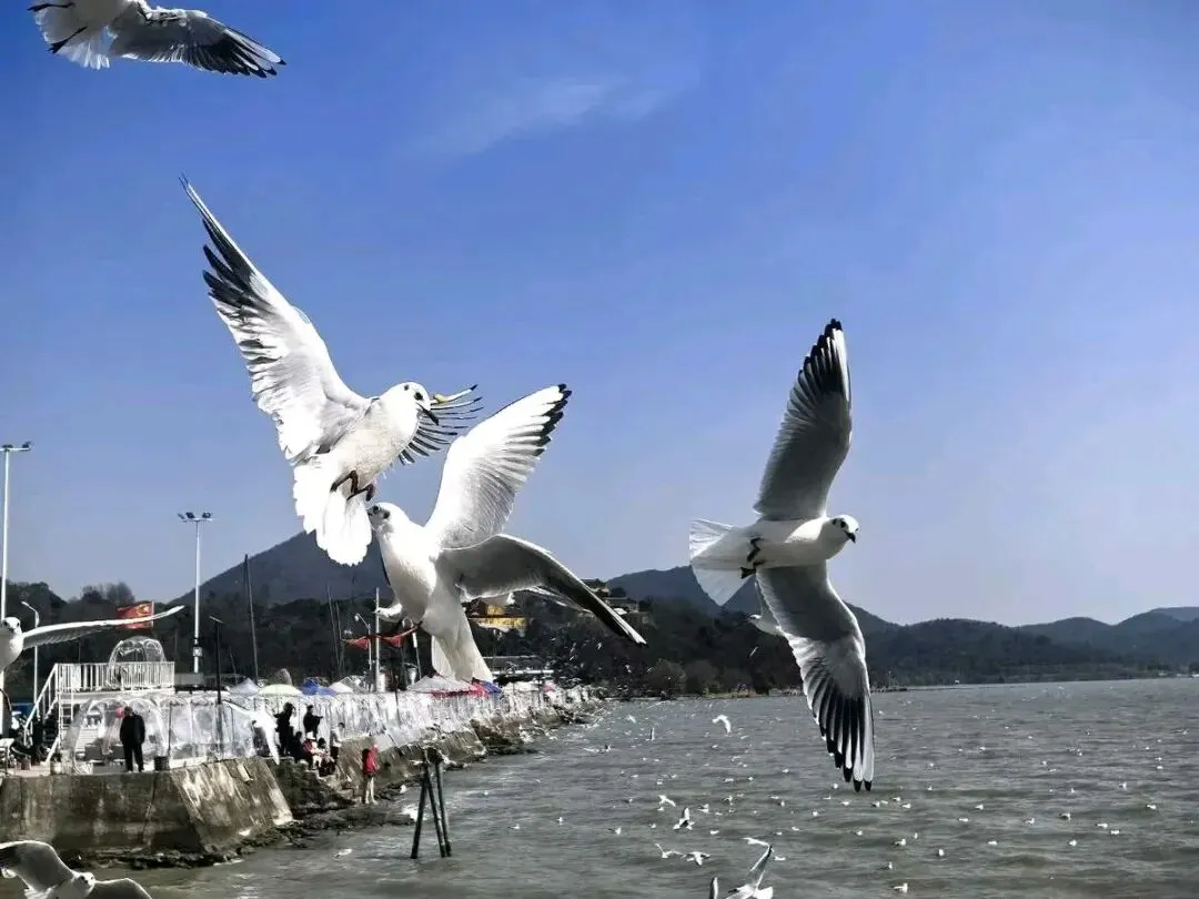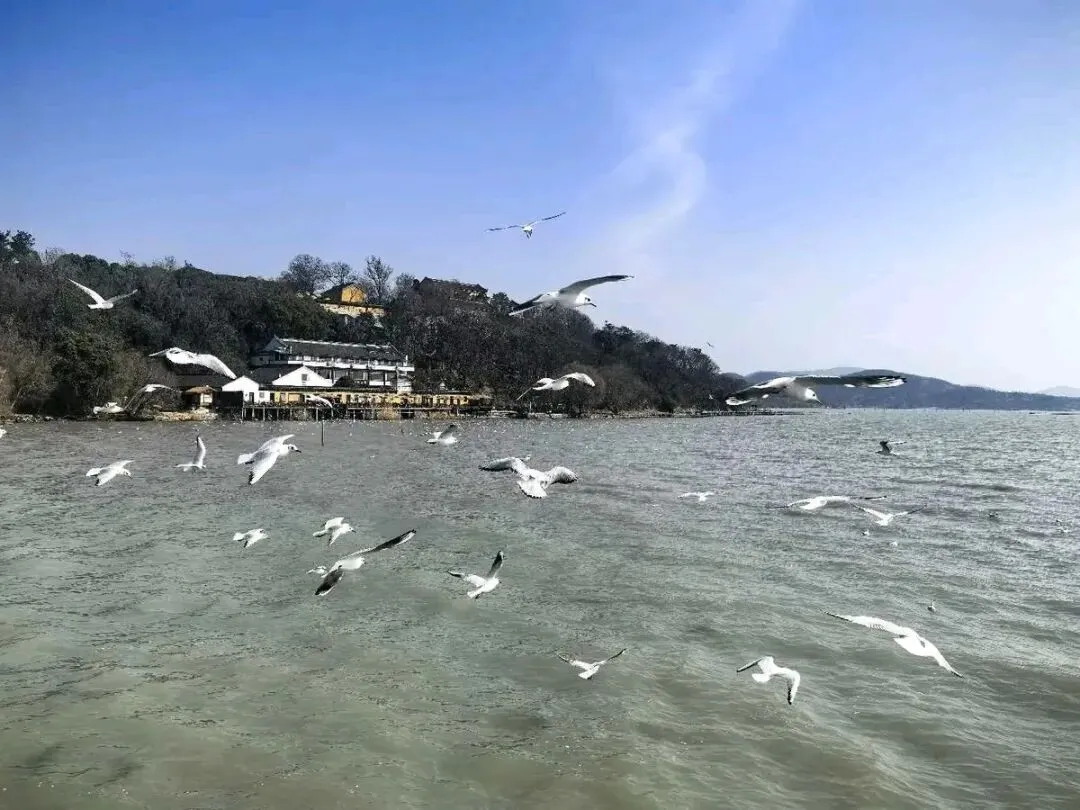 冬日的太湖,因一群远道而来的精灵更添生机。红嘴鸥与其他迁徙海鸥,不远万里从北方与深海飞来,择这片温暖之地越冬。太湖的广袤水域、丰富渔产与宜人气候,成了它们冬日里最完美的避风港。