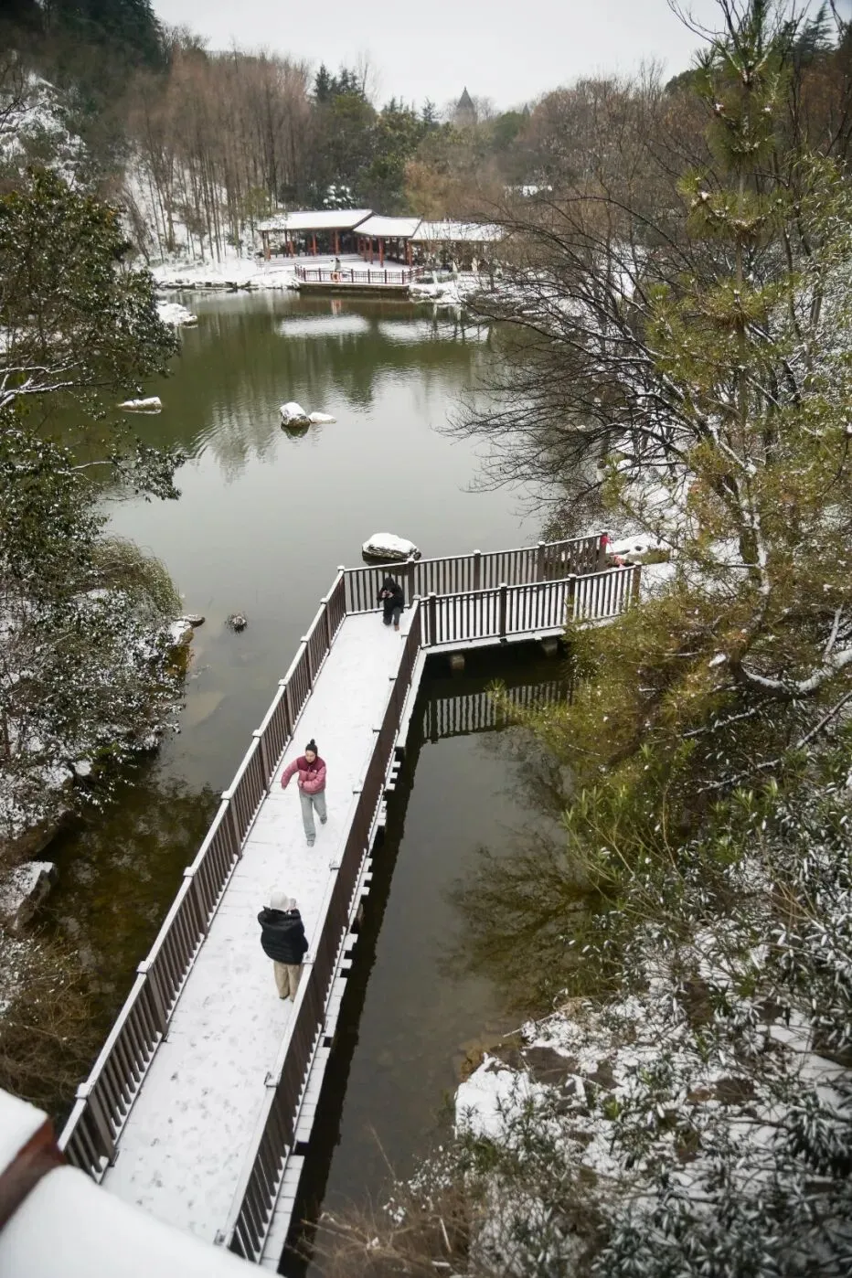 枯枝上压着一层薄冰残雪,踩在松软的雪地上咯吱作响,逛着逛着就像闯进了藏在城市里的雪后小秘境,不用特意找角度,随手拍都是大片!