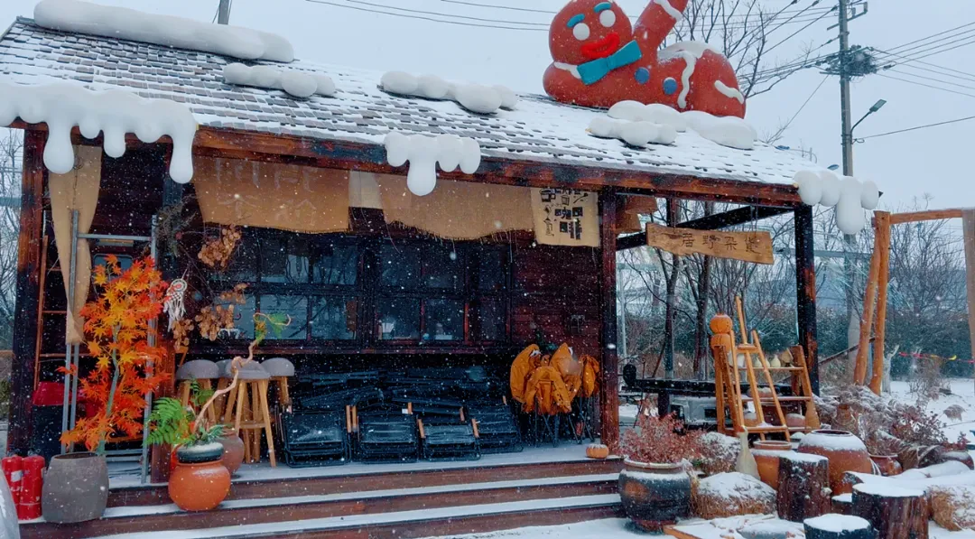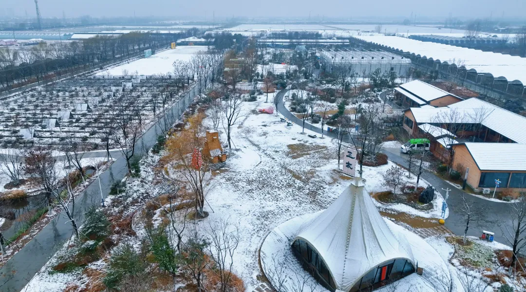 薄雪盖满菜畦栈道,草莓棚凝着霜花,萌宠沾雪撒欢。咖啡屋暖香袅袅,田埂农舍银装素裹,随手拍都是田园雪景大片。