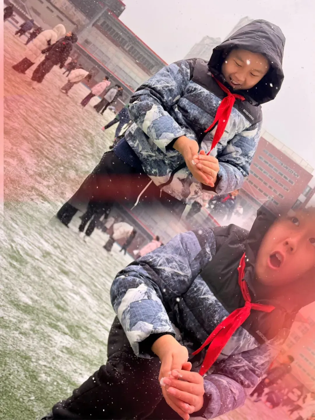 一小时的飞雪虽短暂,却让操场成了欢乐的海洋。冻红的小手团起雪球,仰起的脸庞接住雪花,奔跑的身影穿透寒风。孩子们在漫天飞雪里卸下备考的疲惫,把童真与活力,都藏进了这冬日的小确幸里。