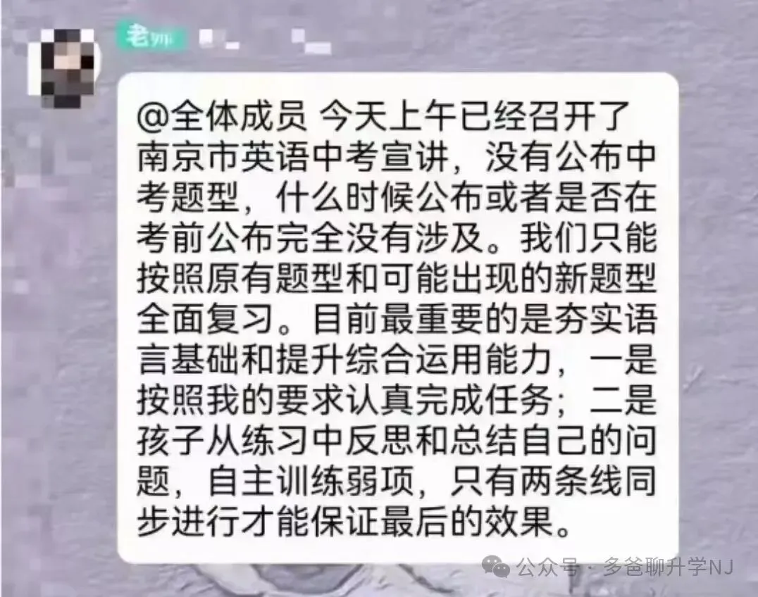 目前网传最新消息:南京市中考英语宣讲会上依旧没有公布中考题型,只能按原有题型和可能出现的新题型全面复习!!