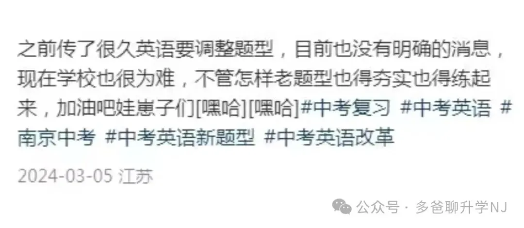 去年据家长群和部分学校老师通知:2024年南京中考英语会迎来改革。可参考之前的文章:有学校通知南京中考英语改革?