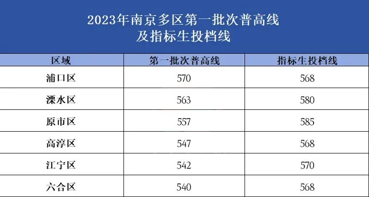 各区第一批次普高投档线、指标生投档线不尽相同。