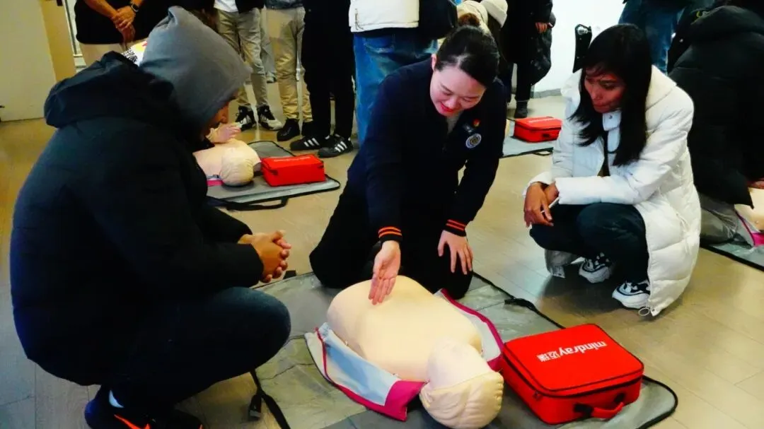 培训课堂里,老师们着重为留学生讲解了“如何拨打120”“如何做CPR”两项重点,全程使用英语授课。