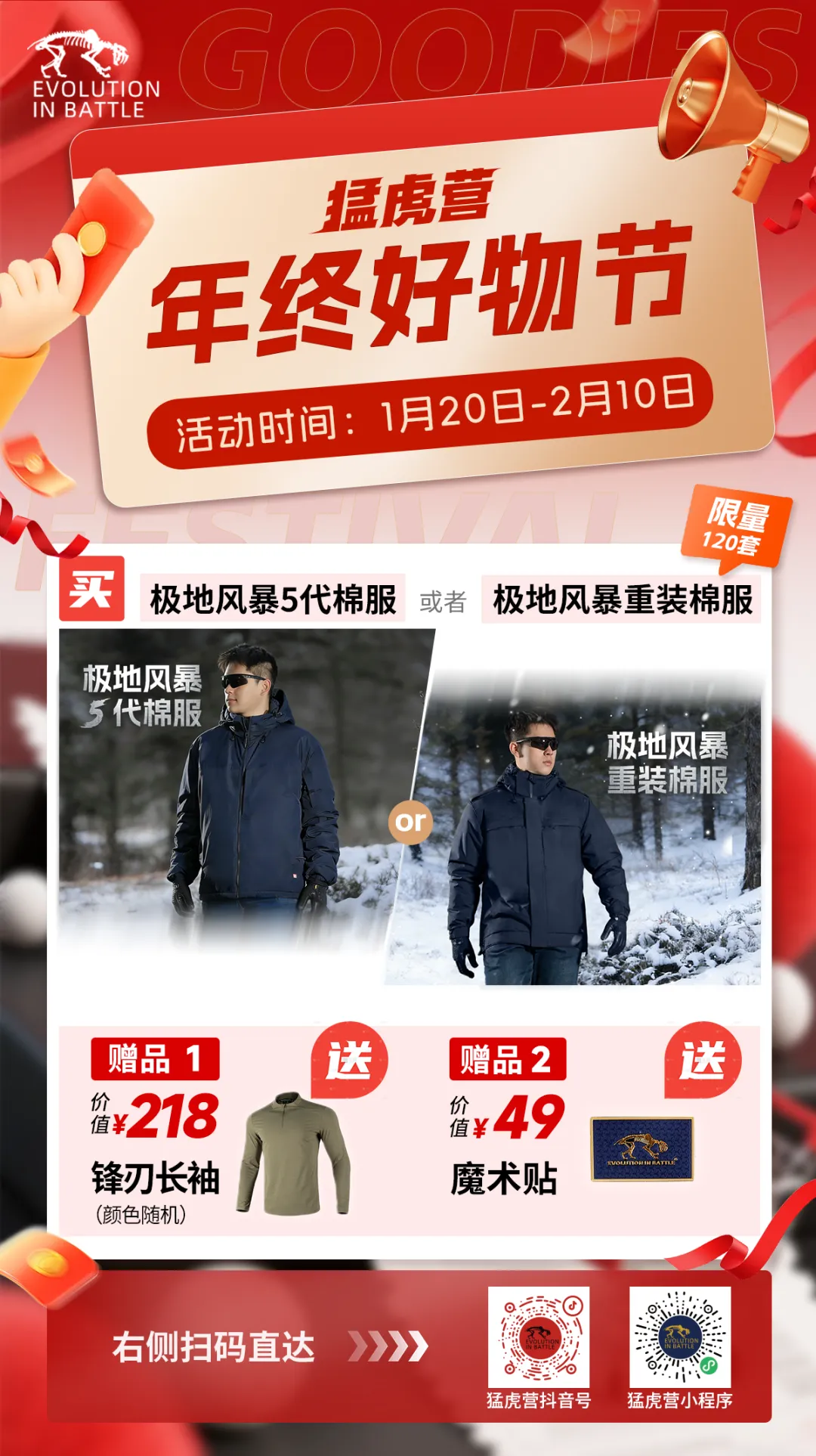 懂大家的冬日刚需,也想为这场风雪添一份暖意——猛虎营年货节暖冬专场上线,买棉服即送长袖内搭,一站式搞定冬日穿搭,温暖与性价比双双拉满!