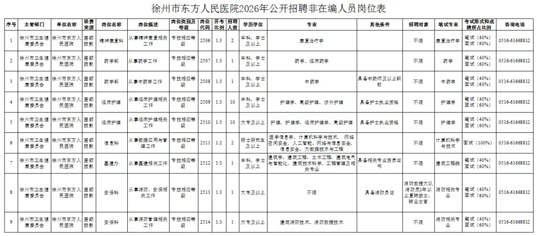 徐州市东方人民医院2026年公开招聘非在编人员公告