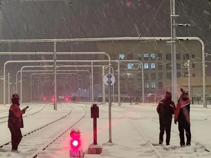 19日凌晨1:30,监测发现露天接触网出现结冰,直接影响列车受电弓取流。接触网专业队伍第一时间响应,手工清除柔性接触线覆冰,并对车辆段、停车场、高架区段执行“雪前排查、雪中巡检”,每2小时一次现场巡视,确保设备状态稳定。