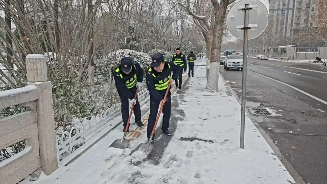与此同时,市城管综合行政执法监督局主动担当、快速响应,累计出动执法人员200余人次,配备执法车辆、对讲机及扫雪除冰装备,积极投身一线扫雪除冰作业,及时处置影响除雪进度和道路通行的突出问题,全力保障扫雪除冰攻坚行动高效有序推进。