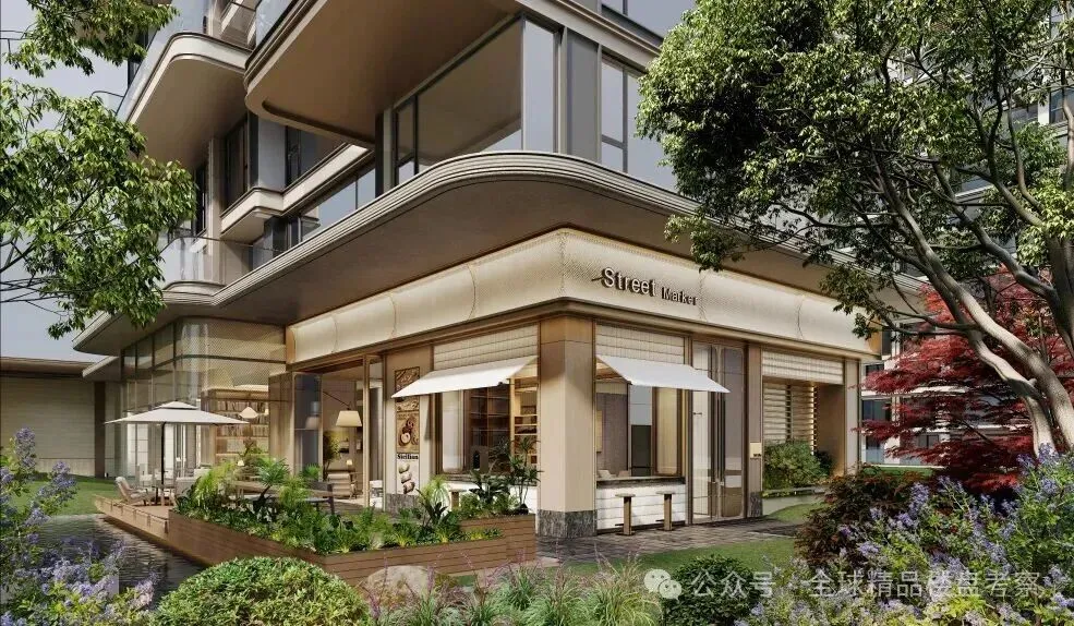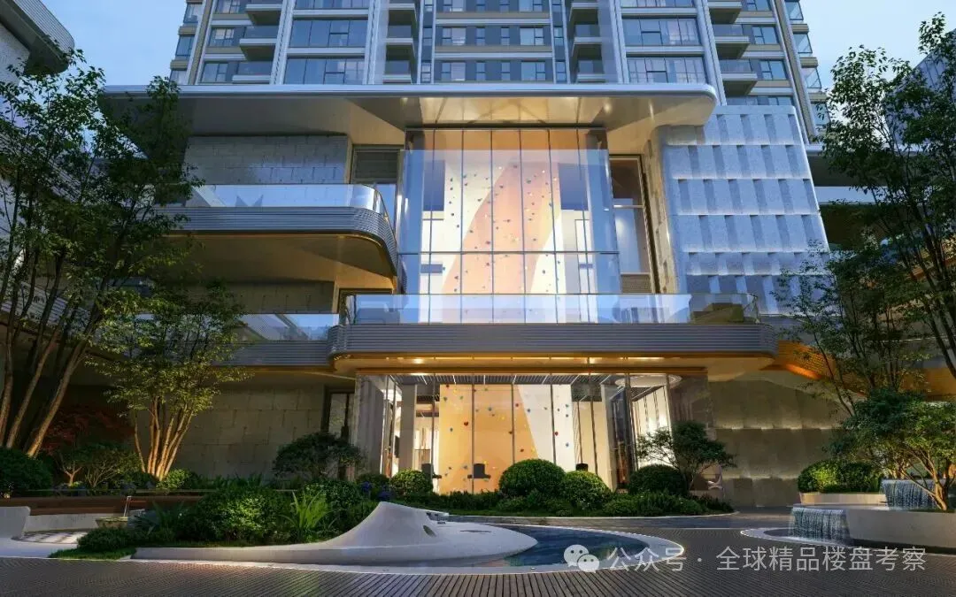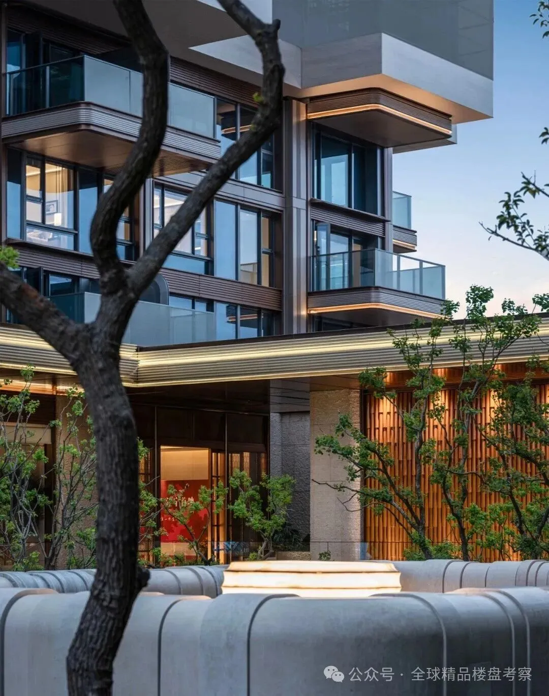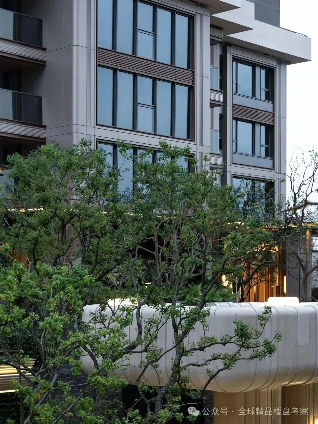 立面设计堪称现代轻奢的艺术化表达,核心特点是「流动曲线 + 公建化材质 + 立体生态」的融合。