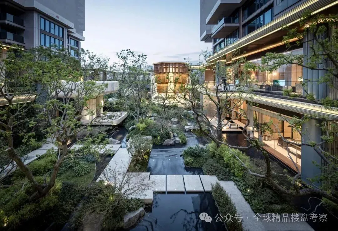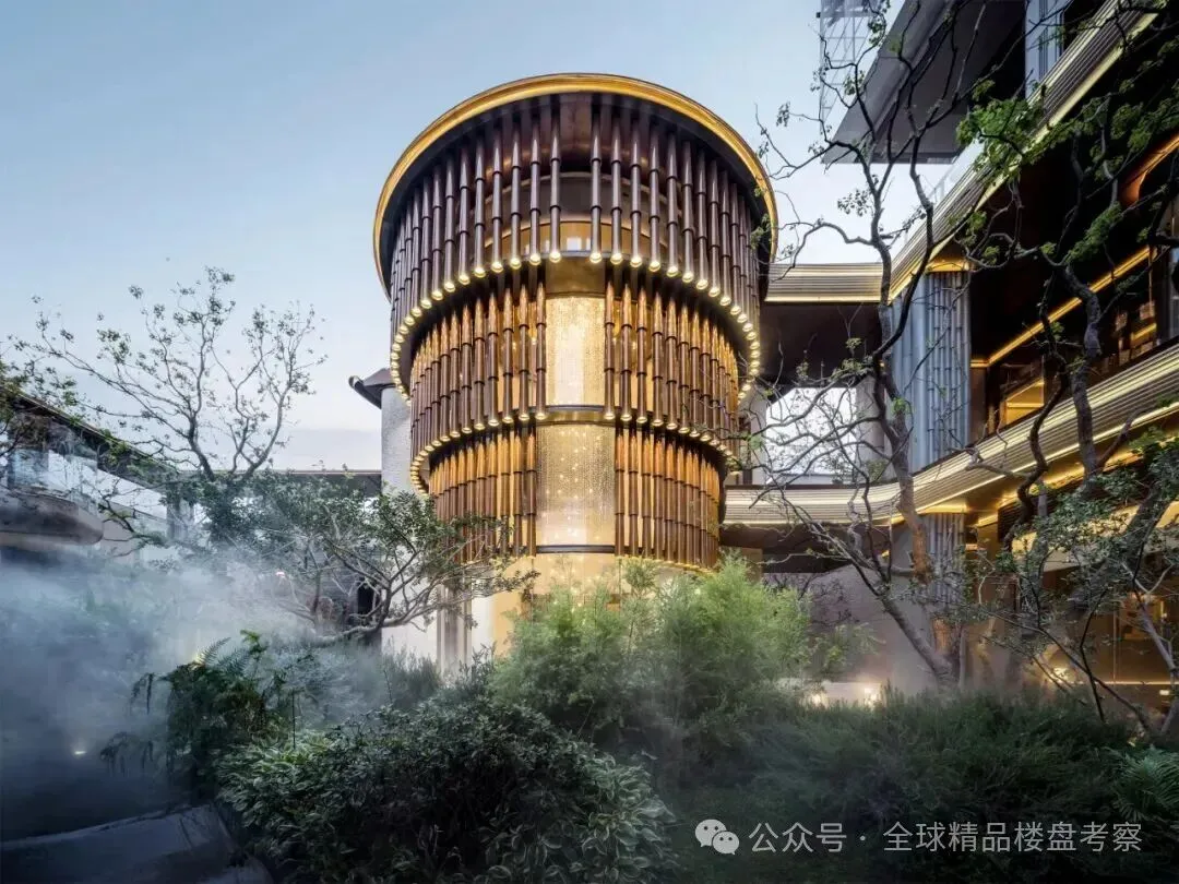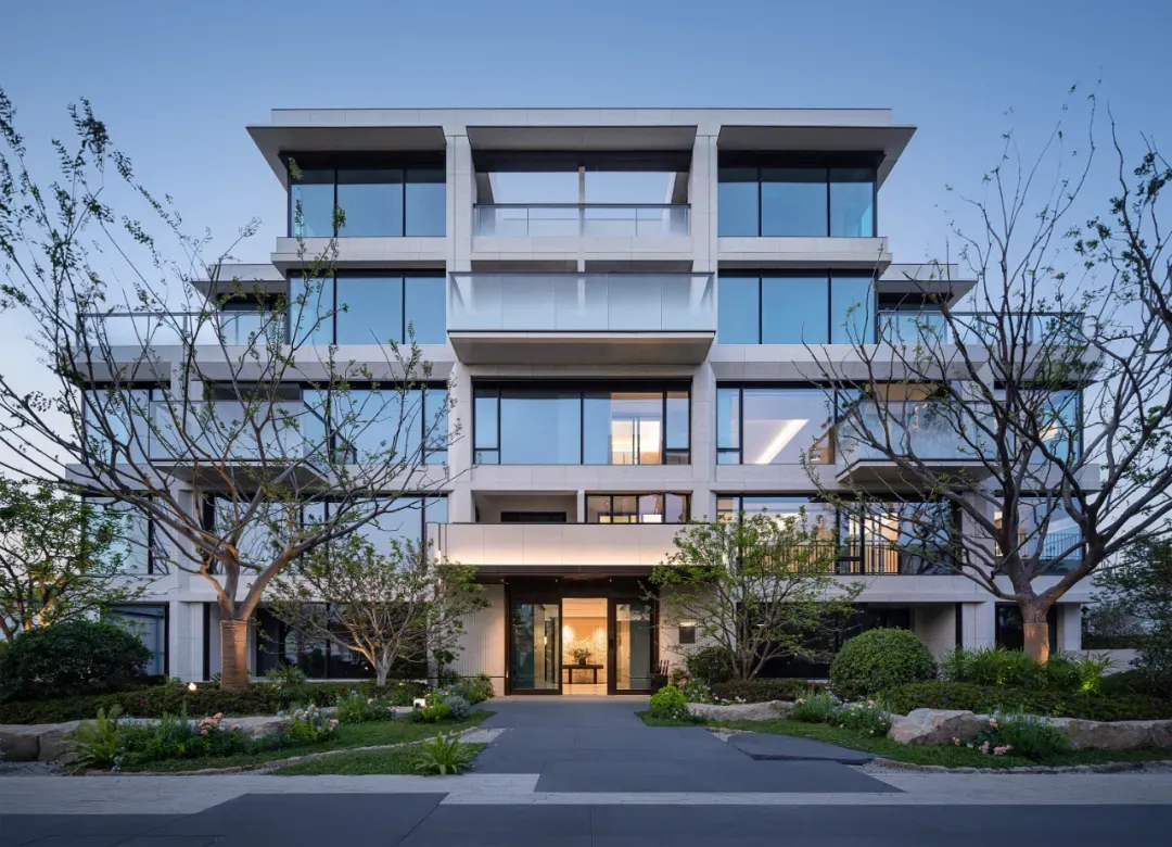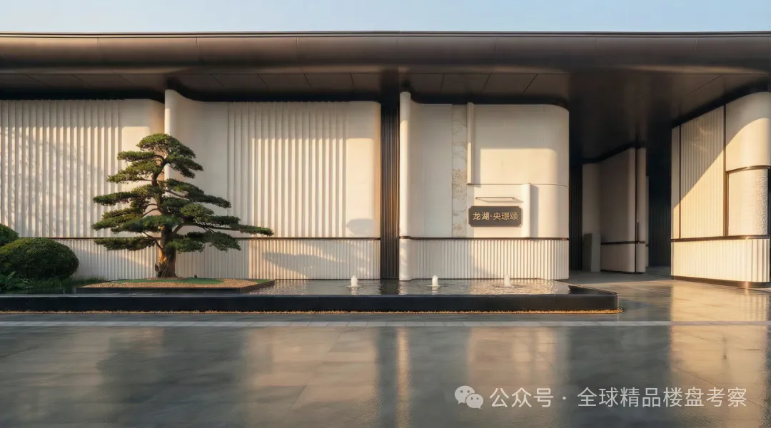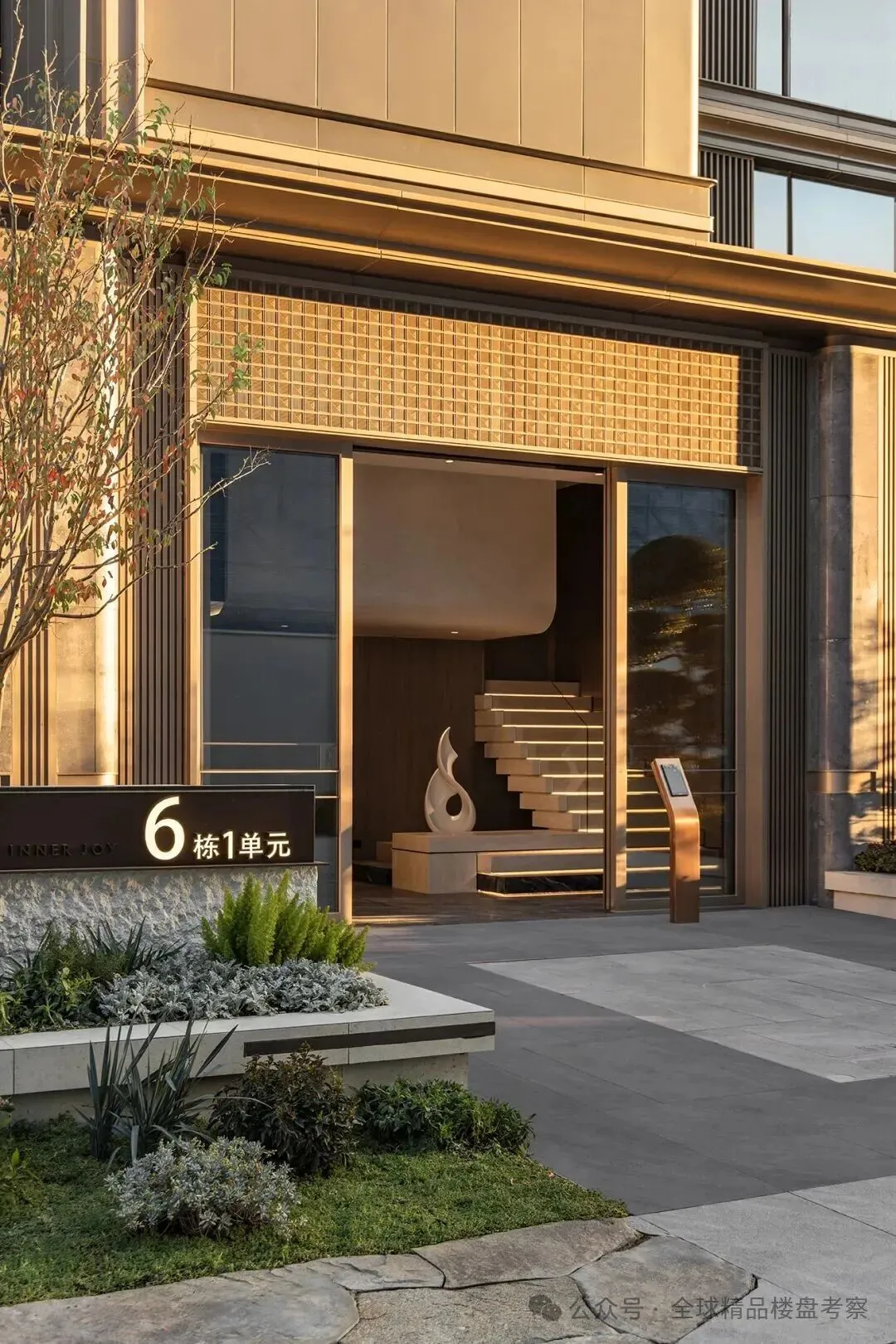 立面设计堪称现代轻奢的艺术化表达,核心特点是「流动曲线 + 公建化材质 + 立体生态」的融合。