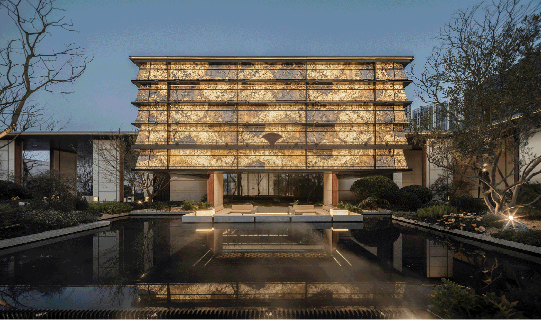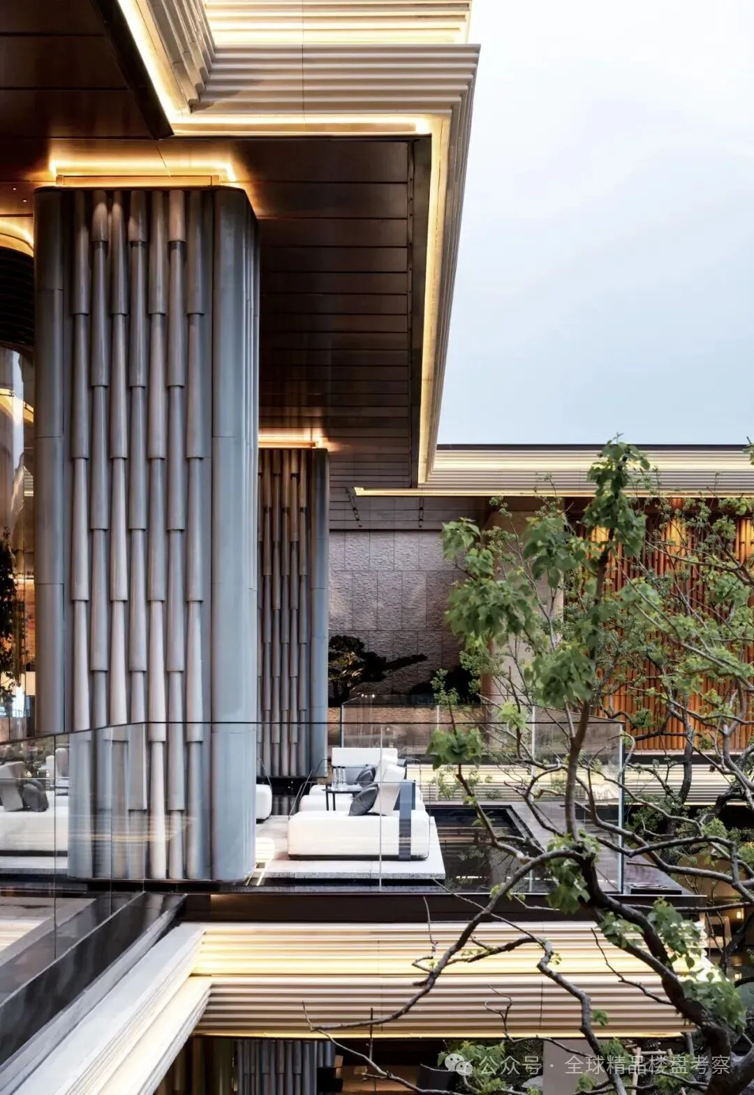 江宁金茂府将金陵的文脉记忆,凝练为“竹”的意象与“陶”的质感,通过一场光影、材料与空间的合奏,打造出一处既具震撼门庭,又富沉浸园林的具有记忆点的建筑群落。