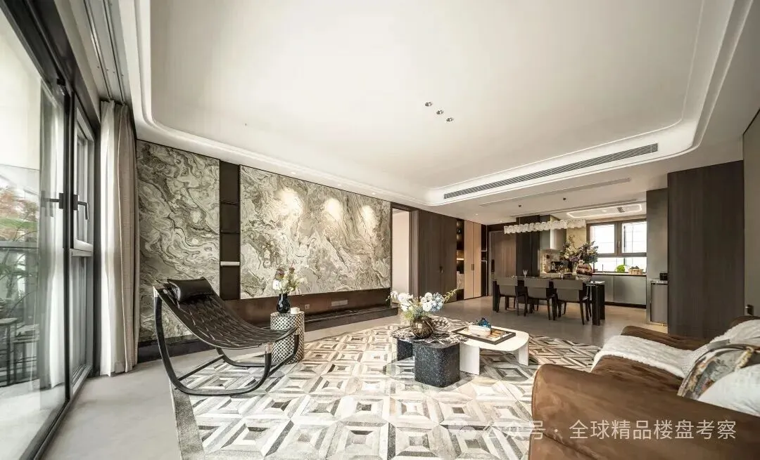 没有复杂的装饰,以高端材质 “玻璃 + 金属 + 石材” 的组合,碰撞出极具辨识度的视觉张力。
