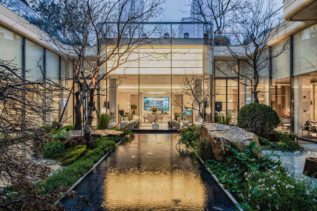 内园萃取紫霞湖、植物园、天文台等紫金山五大标志性景点,匠心营造三轴五园十六院的沉浸景观——生活美学馆以温润奢华对话自然,紫金湖境复刻碧波涟漪的诗意,观山阁构筑 360°环幕观景视野,花园夕照定格植物园花影余晖的浪漫,灵谷望山再现梅花山层峦的毓秀。