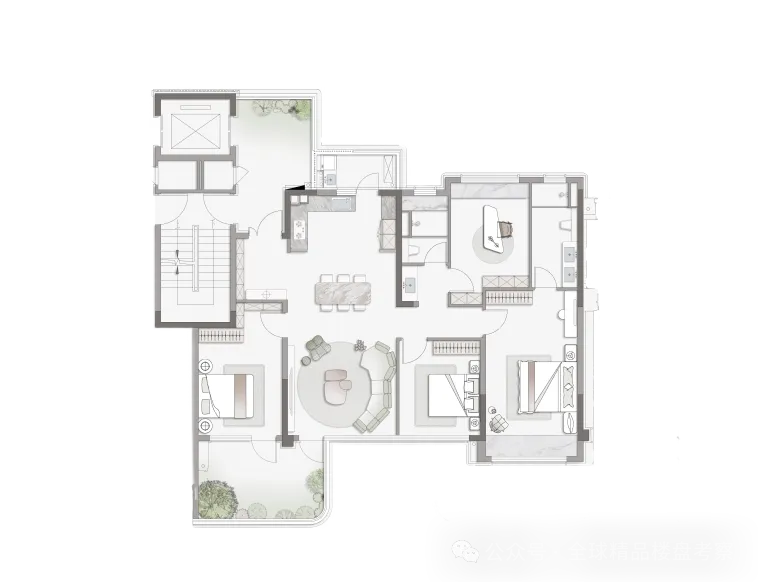 「尊雅仪式感 + 功能复合化 + 自然渗透」的高端架空层范式。