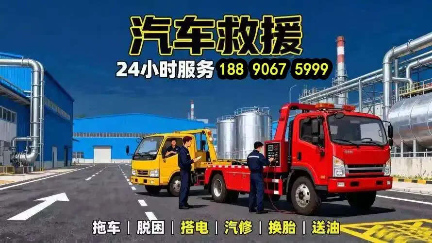 188 90675 999 汽车道路救援服务电话拖车脱困流动补胎上门搭电服务,24小时附近紧急道路救援服务,覆盖市区及周边高速公路,提供道路救援拖车、燃油配送、补胎换胎、汽车搭电等多类型服务。专业响应迅速,价格透明。道路救援服务项目
