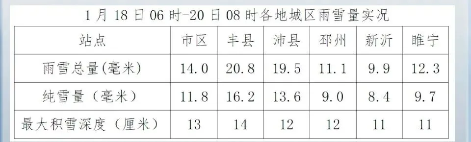 据徐州气象发布的雨雪实况