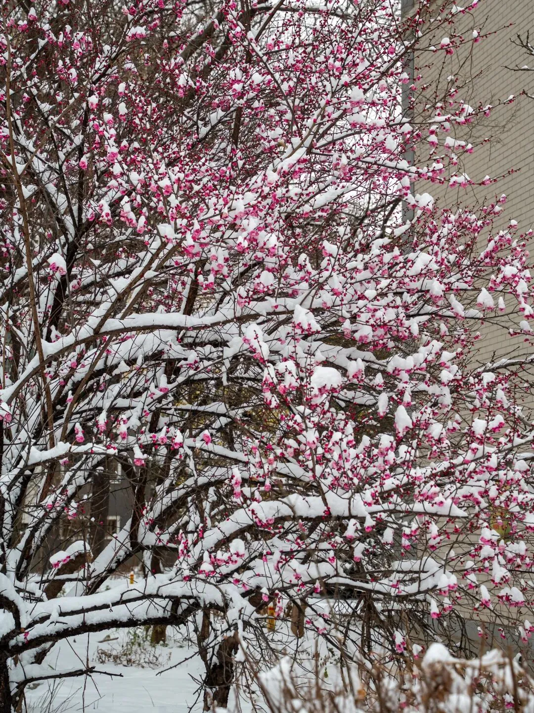 广场北边路旁的这棵梅树,花开得正艳。