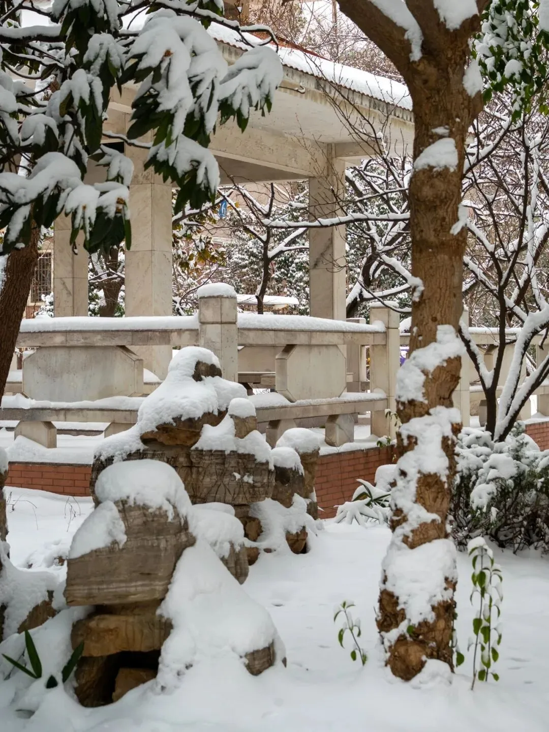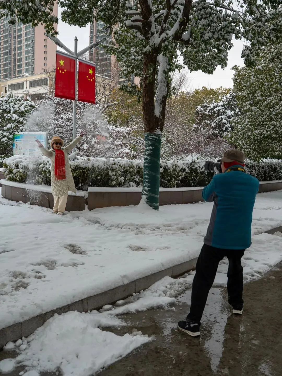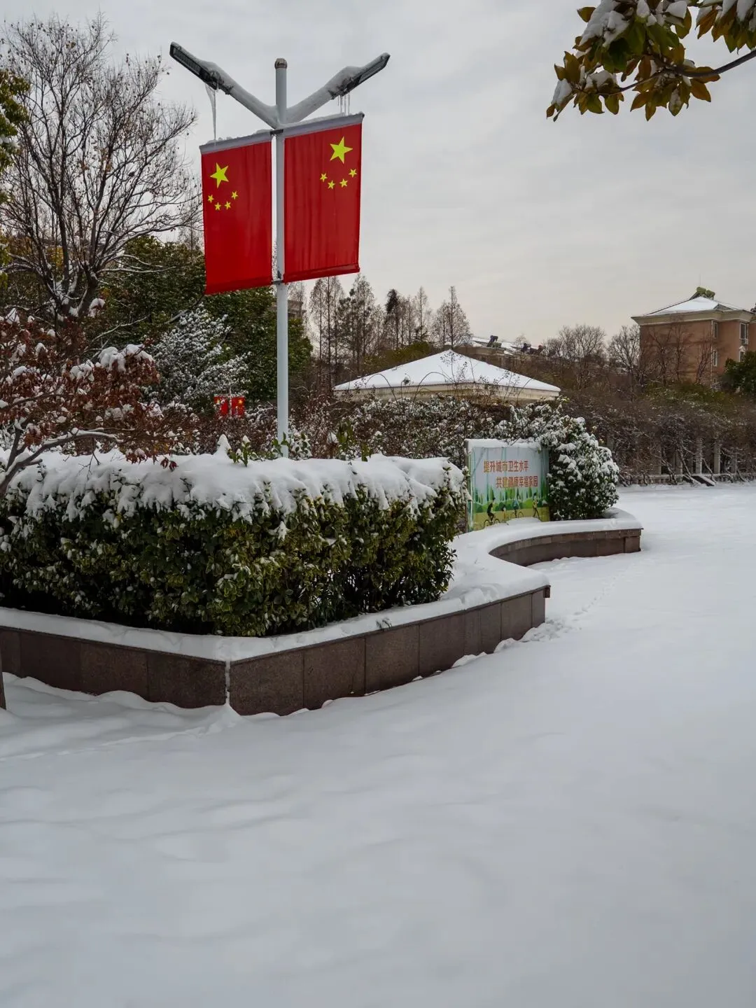 积雪铺满广场地面