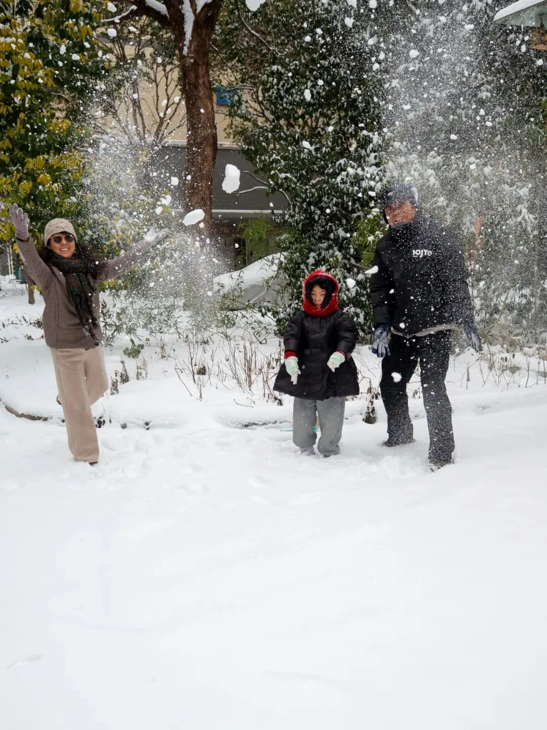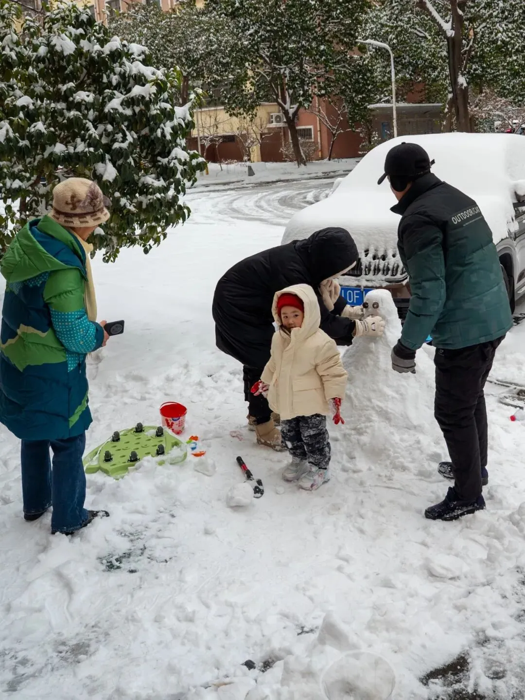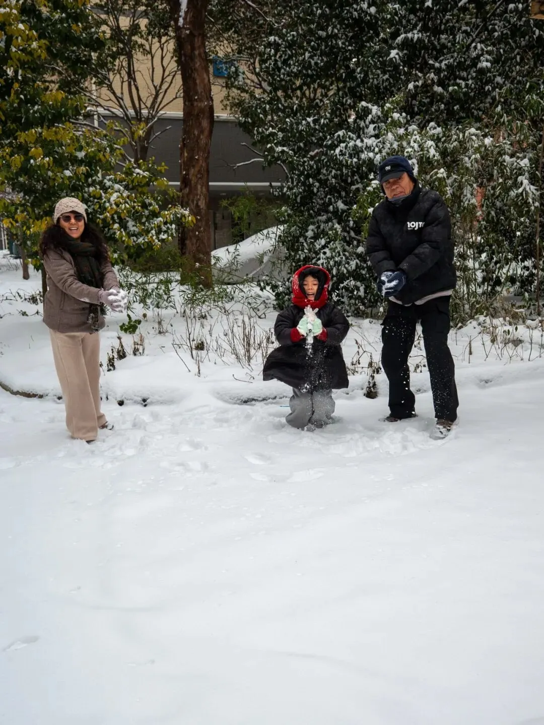 祖孙三代在堆雪人