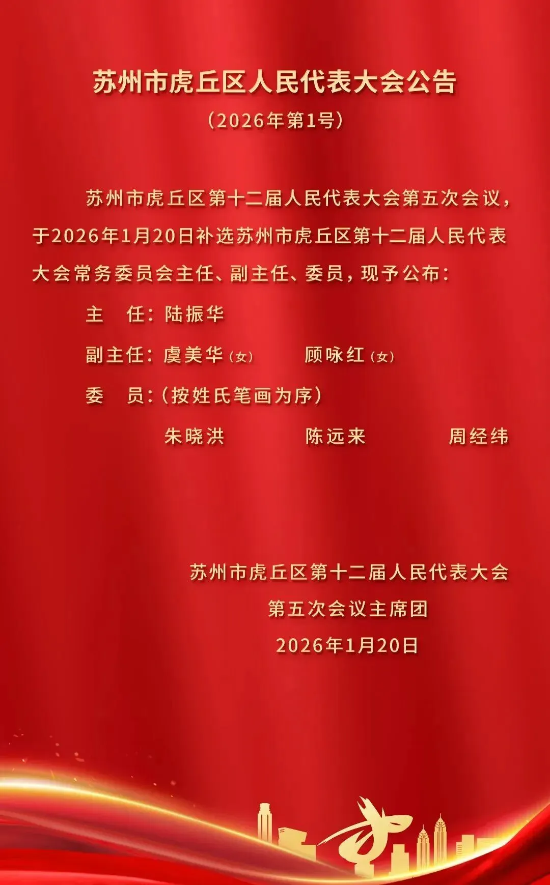 >苏州市虎丘区人民代表大会公告(2026年第1号)