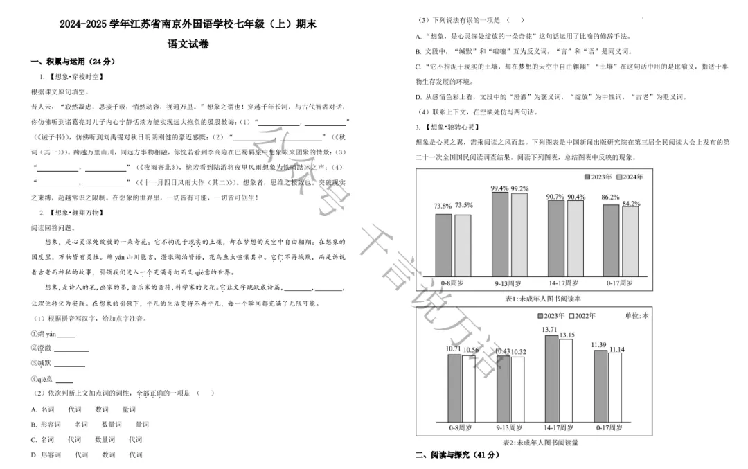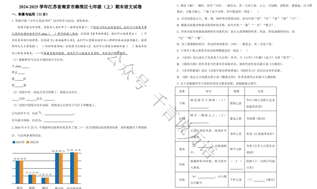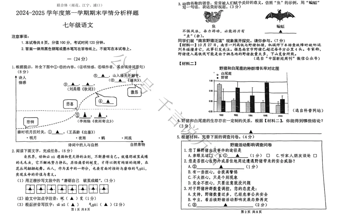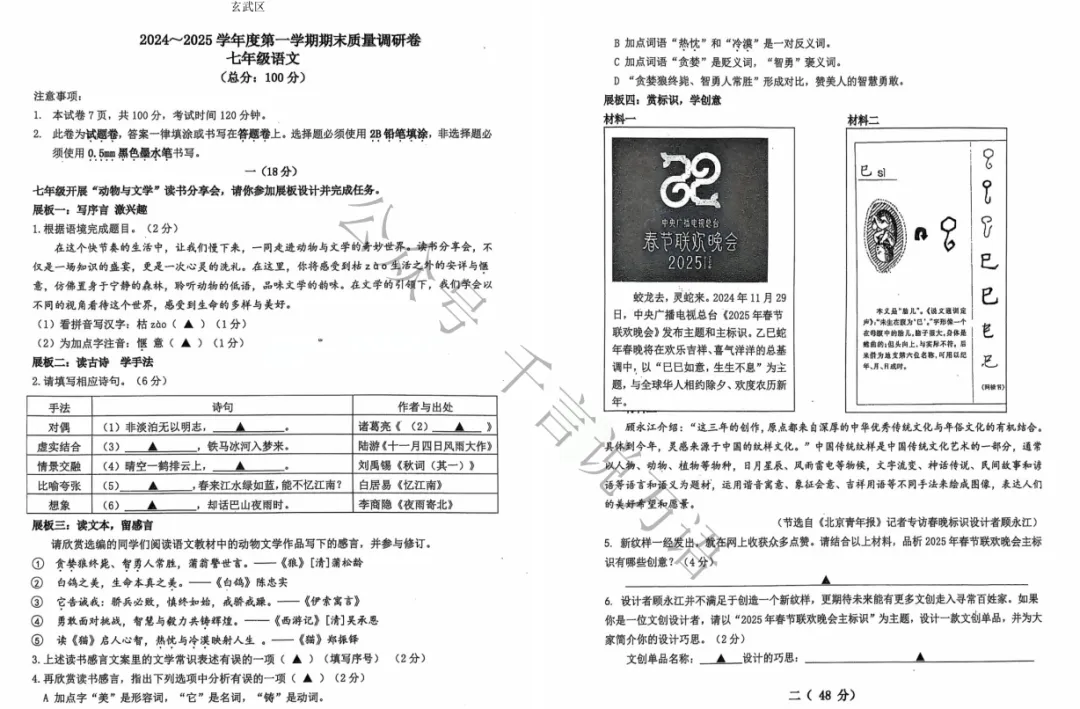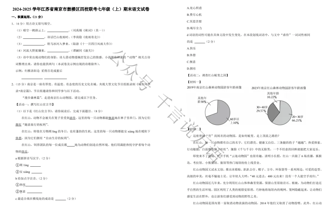 南京市各区2024-2025年七年级上学期期末试卷