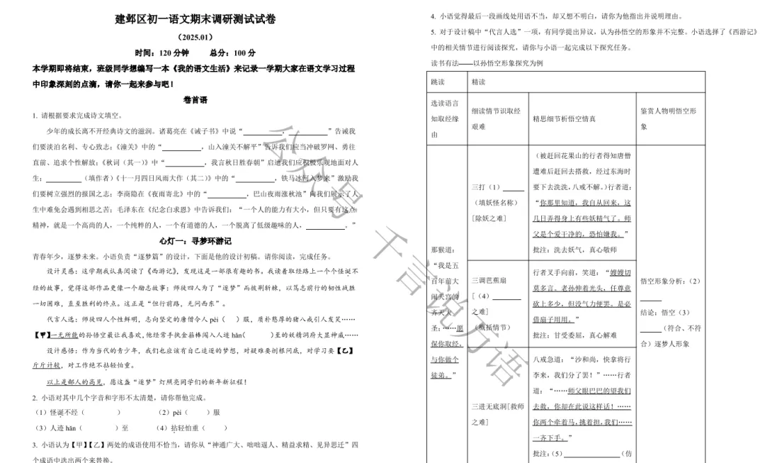 2024-2025南京各区七年级上学期期末真题卷.pdf