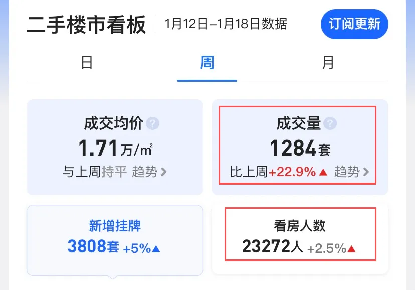 而从全周的成交量和看房人数来看,进入1月以后也都在持续攀升。