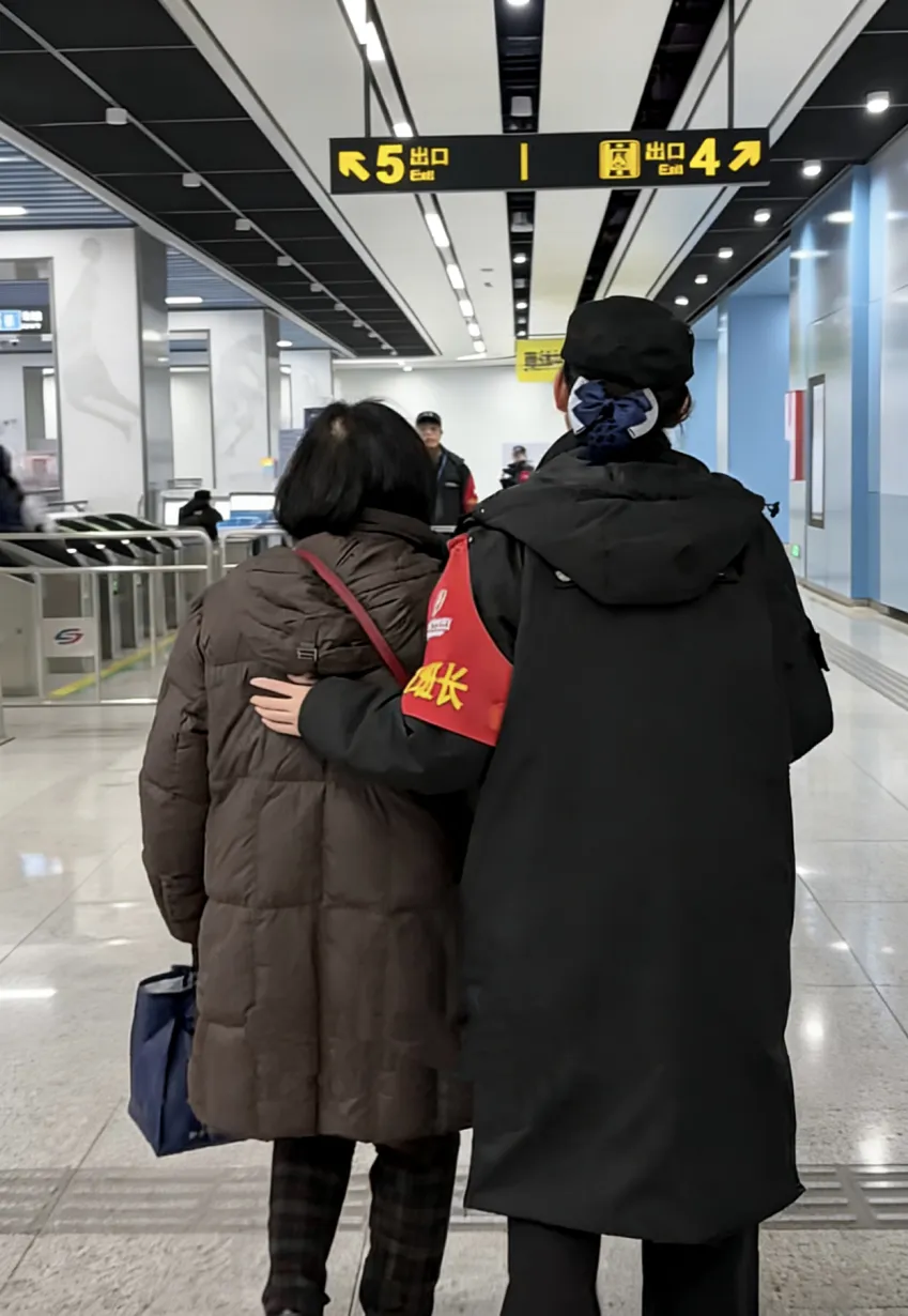 电话接通后,家属得知老人平安,终于松了一口气,表示马上开车来接。家属赶到后,杜柳洁仔细核对身份,才放心地把老人交到家人手中。面对连声道谢,她只是微笑说:“保障乘客安全出行是我们的职责,应该的。”随后便返回岗位,继续工作。