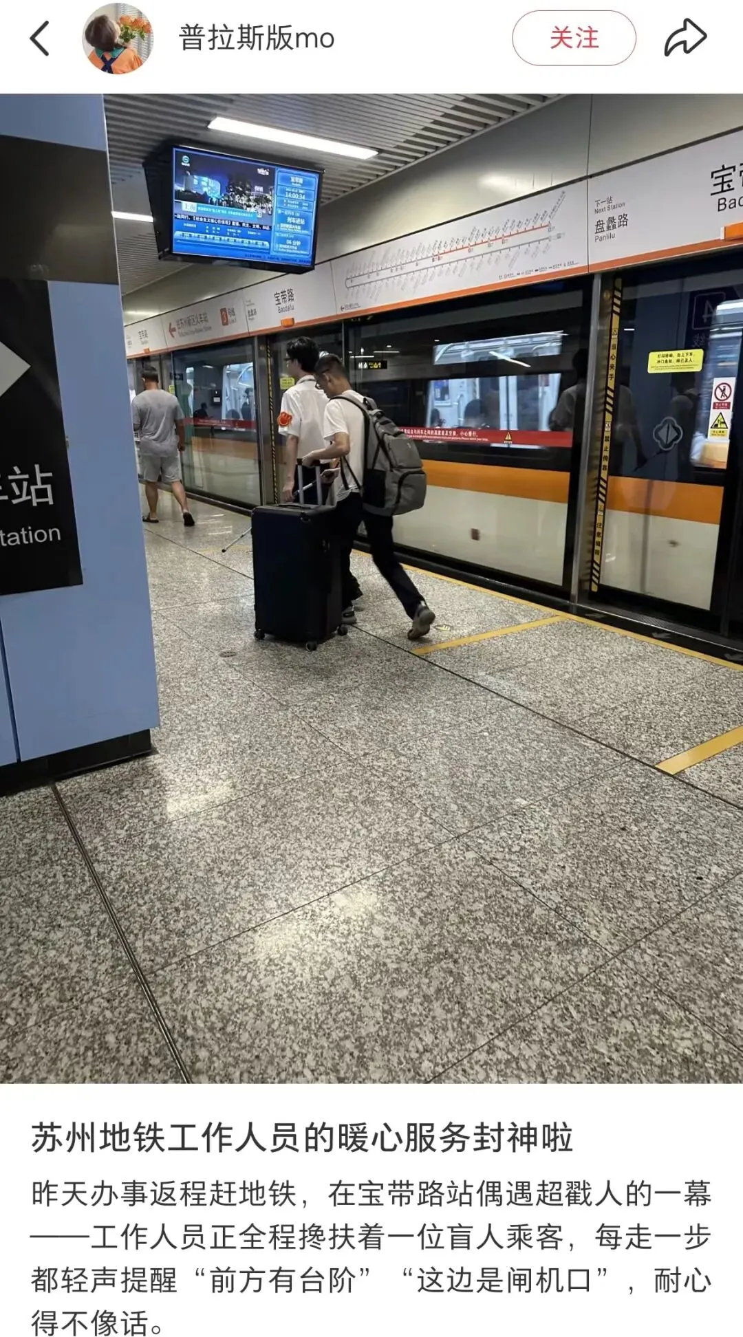 1月15日晚上11点左右,苏州奥体中心站渐渐安静下来,末班车即将结束运营。行车值班员突然接到邻站电话:一位身穿深棕色羽绒服的老人可能在本站下车,需要留意。安检员叶斌在站厅发现了这位神情焦急、独自徘徊的老人,便主动上前轻声询问。原来老人坐过站,和老伴走散了,手机又欠费停机,一时不知所措。