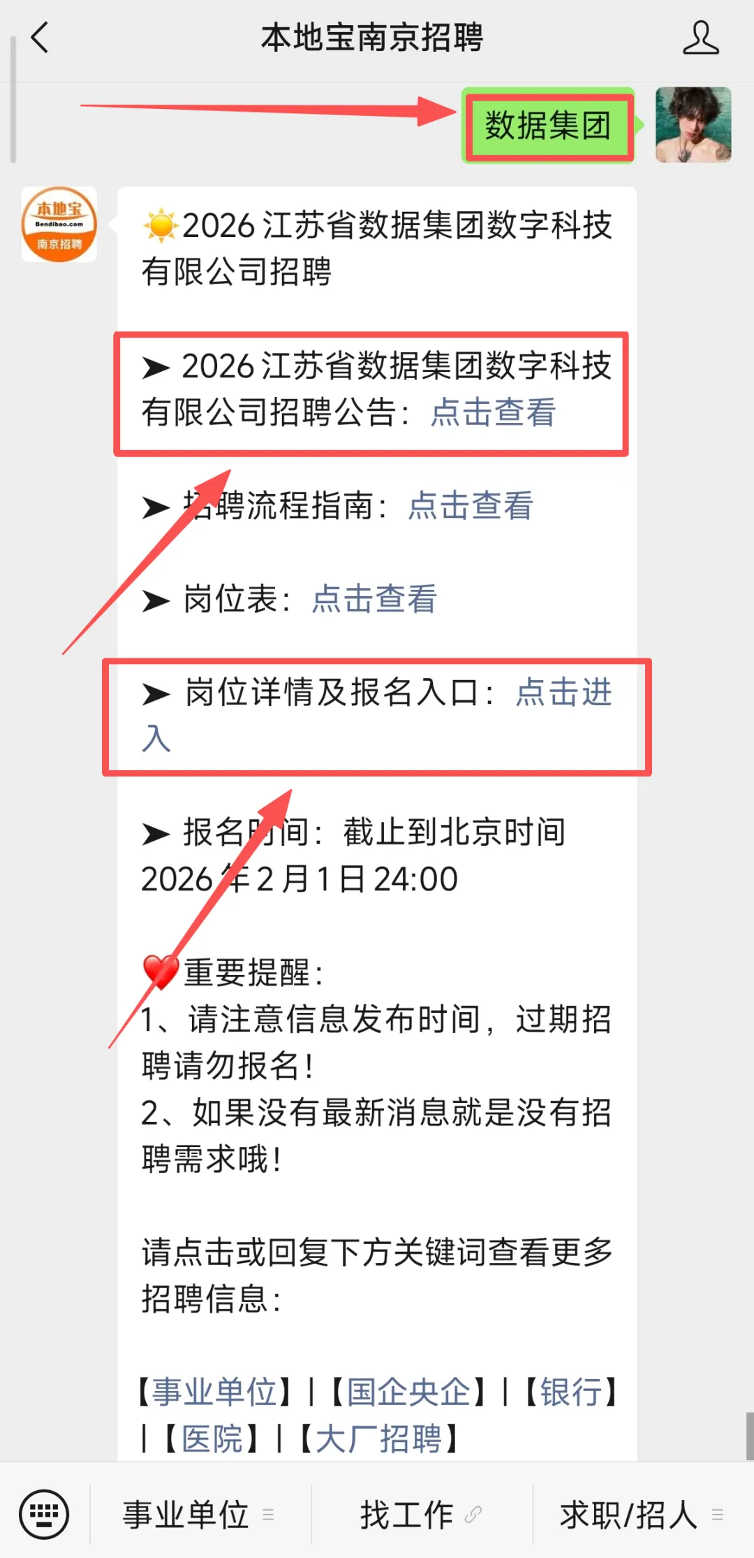回复【事业单位】获取南京各事业单位招聘最新
