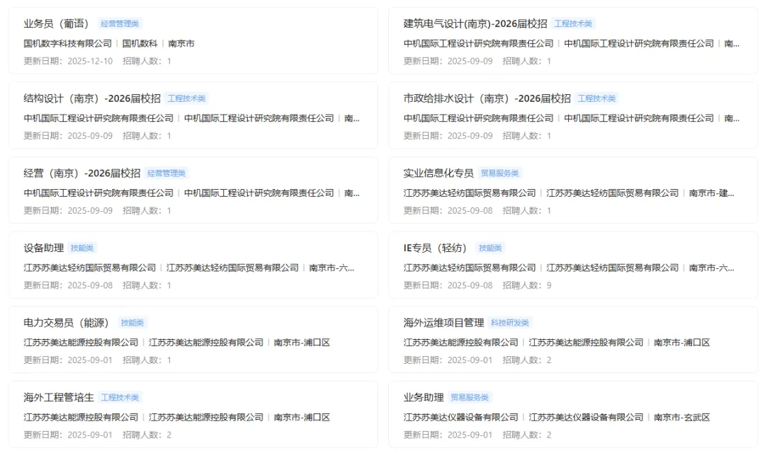 回复【国企央企】获取各国企央企江苏/南京分公司招聘信息